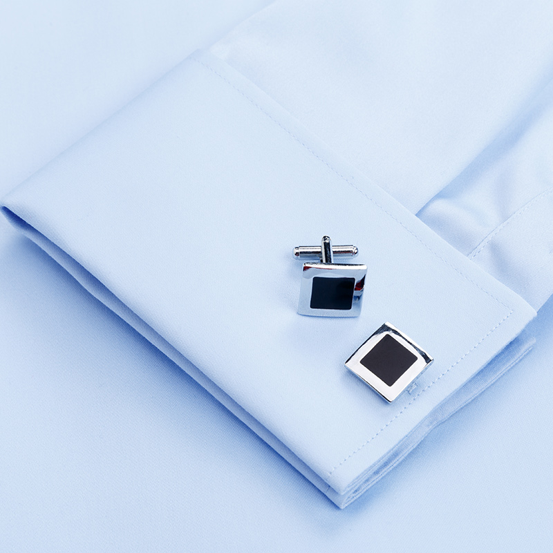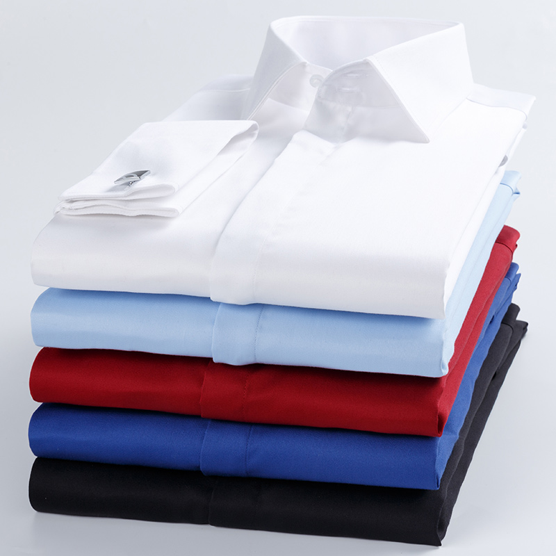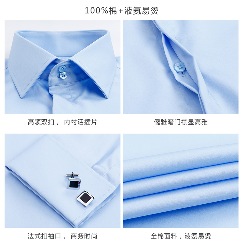 法式衬衫男修身长袖商务袖扣高领纯棉免烫高级感丝光棉男士白衬衣