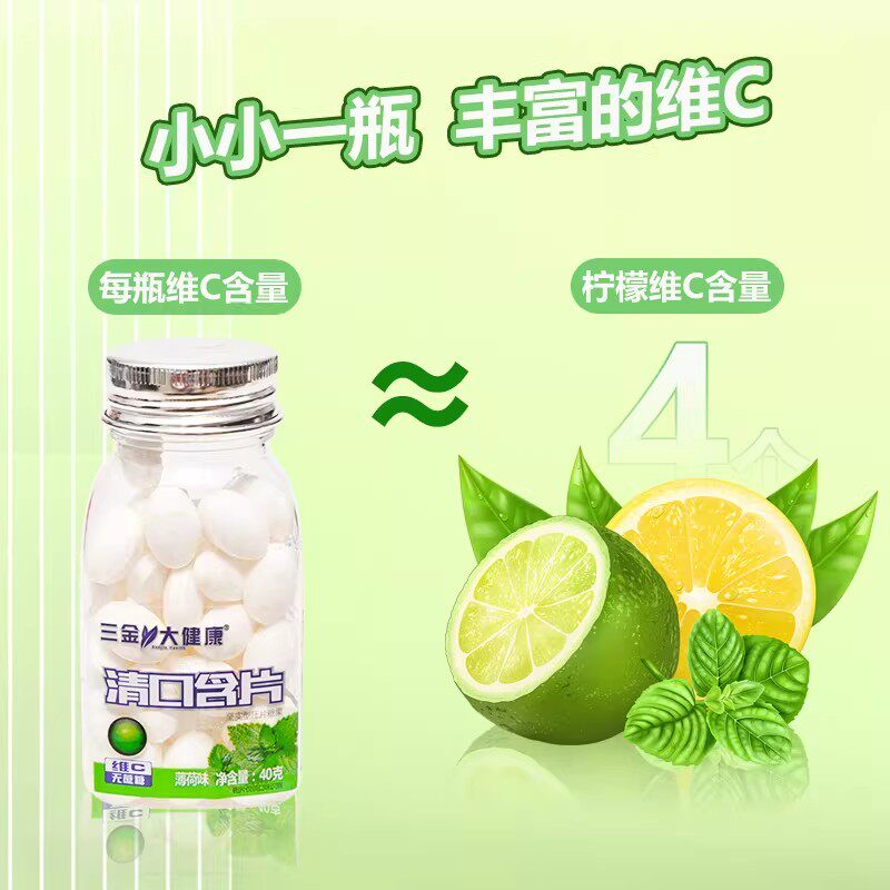 桂林三金清口含片薄荷芒果草莓柠檬糖口气清新维C润喉片40g无糖型