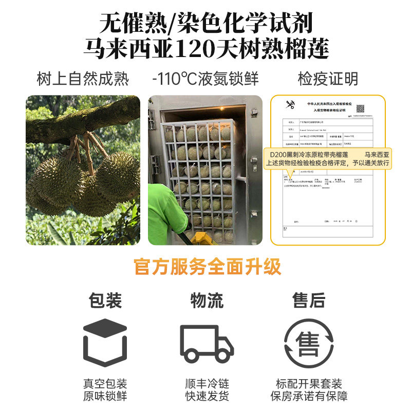 【马来西亚官方旗舰店】黑刺榴莲D200液氮冷冻顺丰包邮新鲜进口