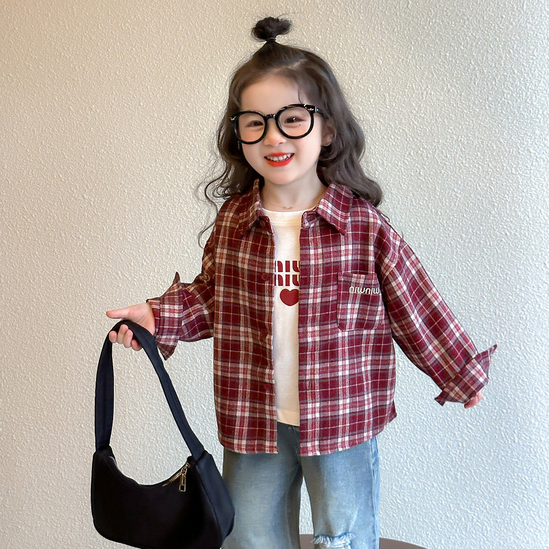 女童格子衬衫春秋款2025新款儿童装洋气时髦衬衣宝宝秋装韩系上衣