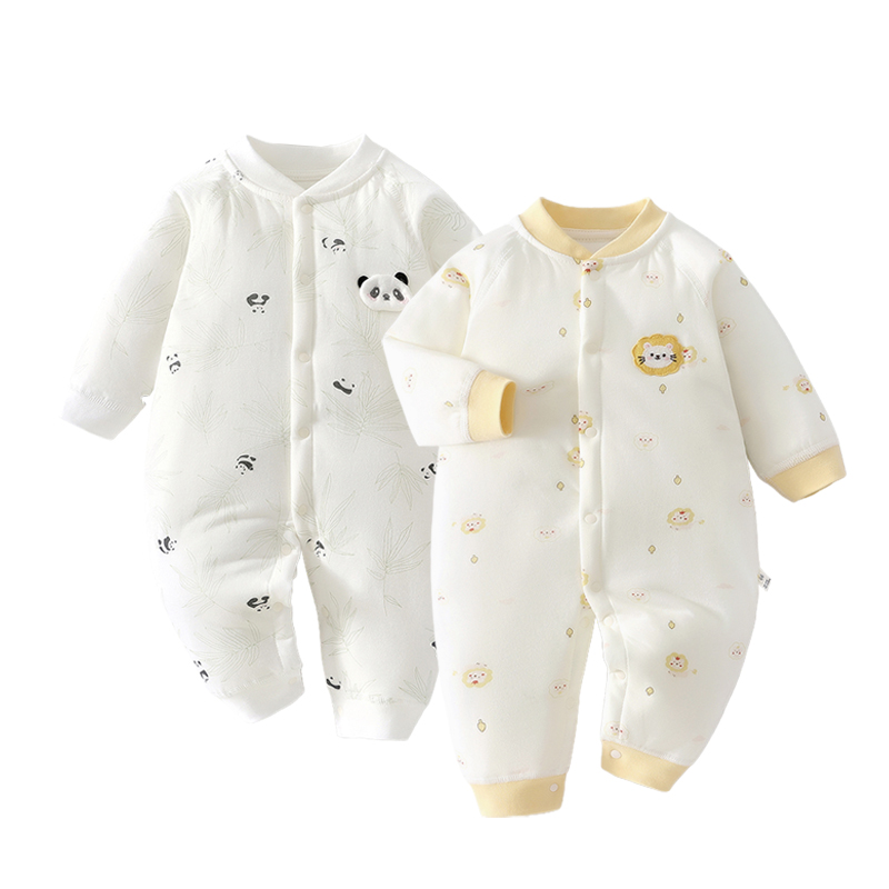 2件 秋冬婴儿连体衣新生男女宝宝夹棉衣服无骨哈衣爬服小月龄睡衣