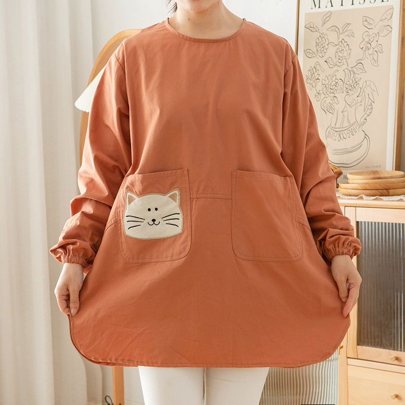 围裙家用厨房纯棉小清新长袖防污清洁可爱家务韩版男女罩衣工作服