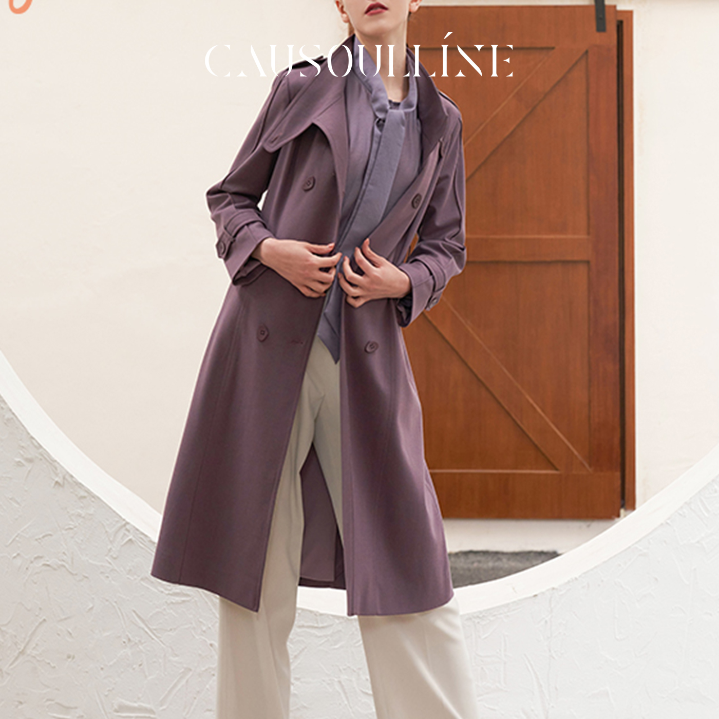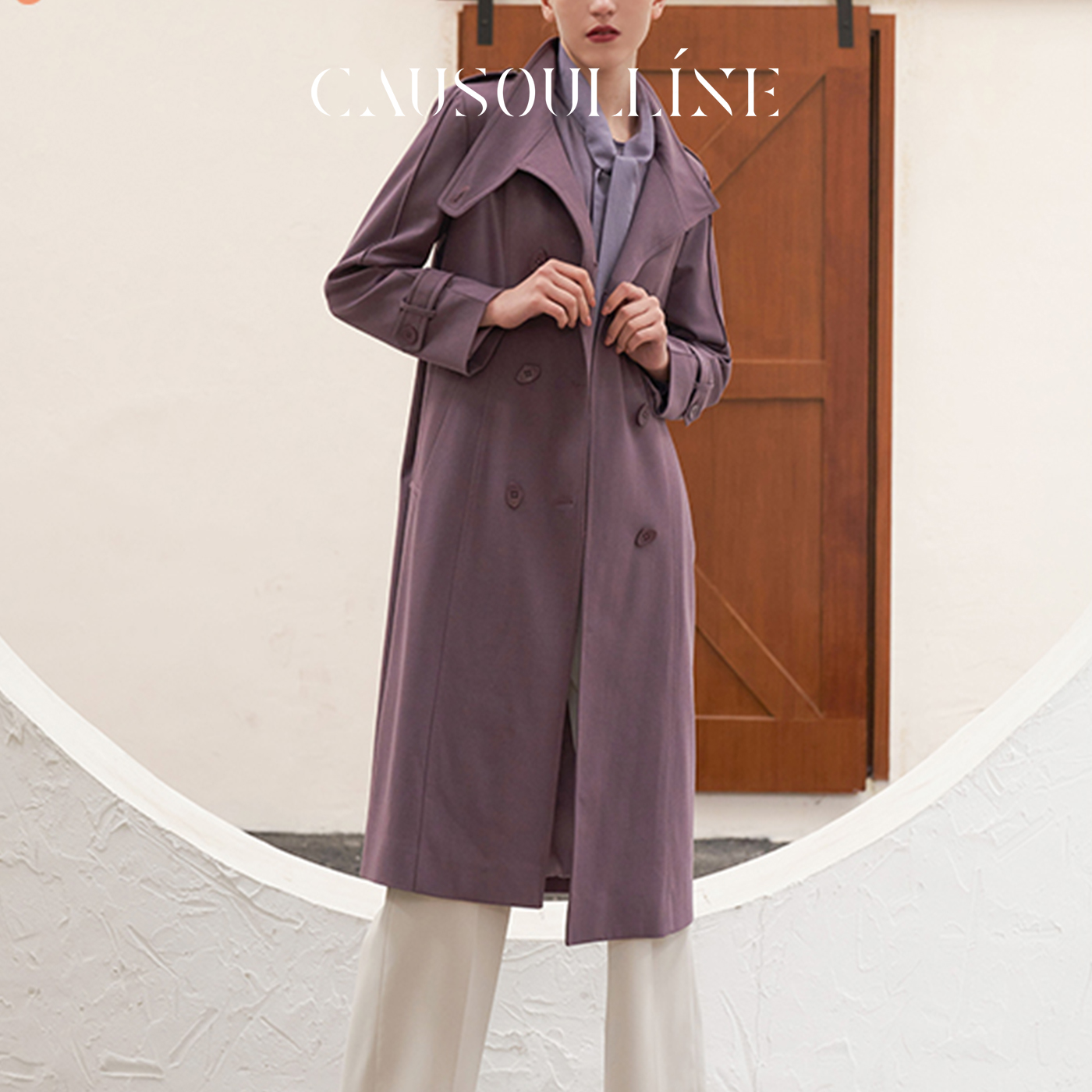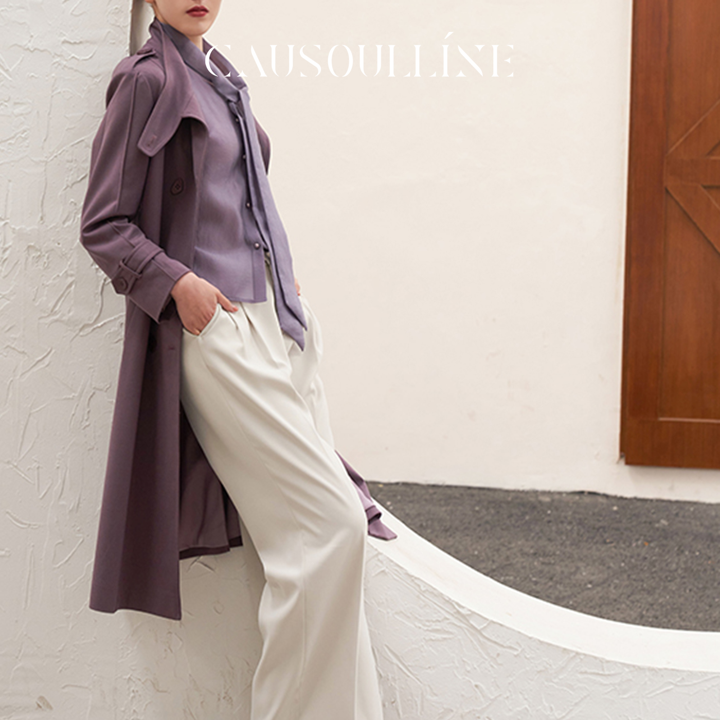 高斯雪岚2025新款纯色翻领时尚气质宽松长款风衣OL外套女