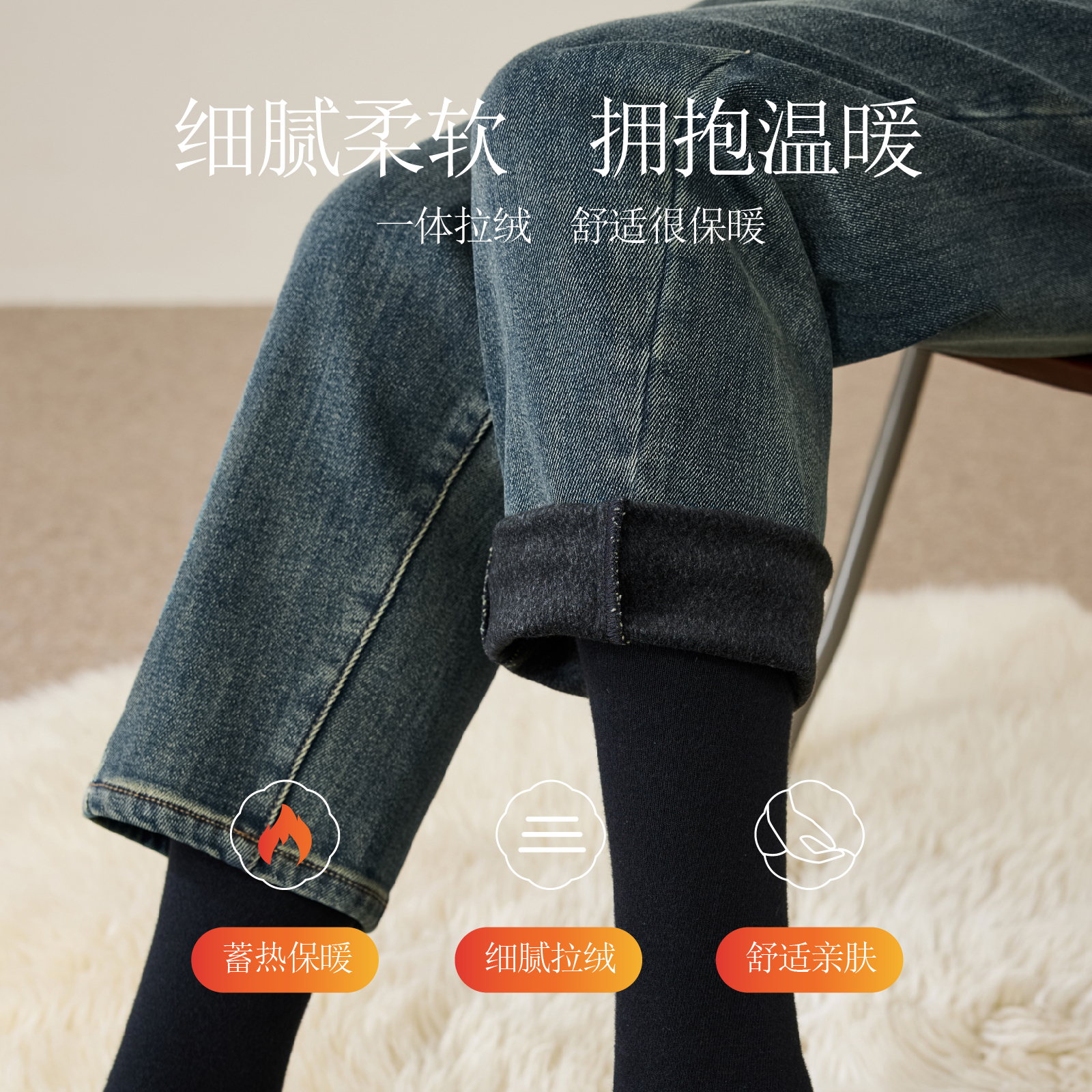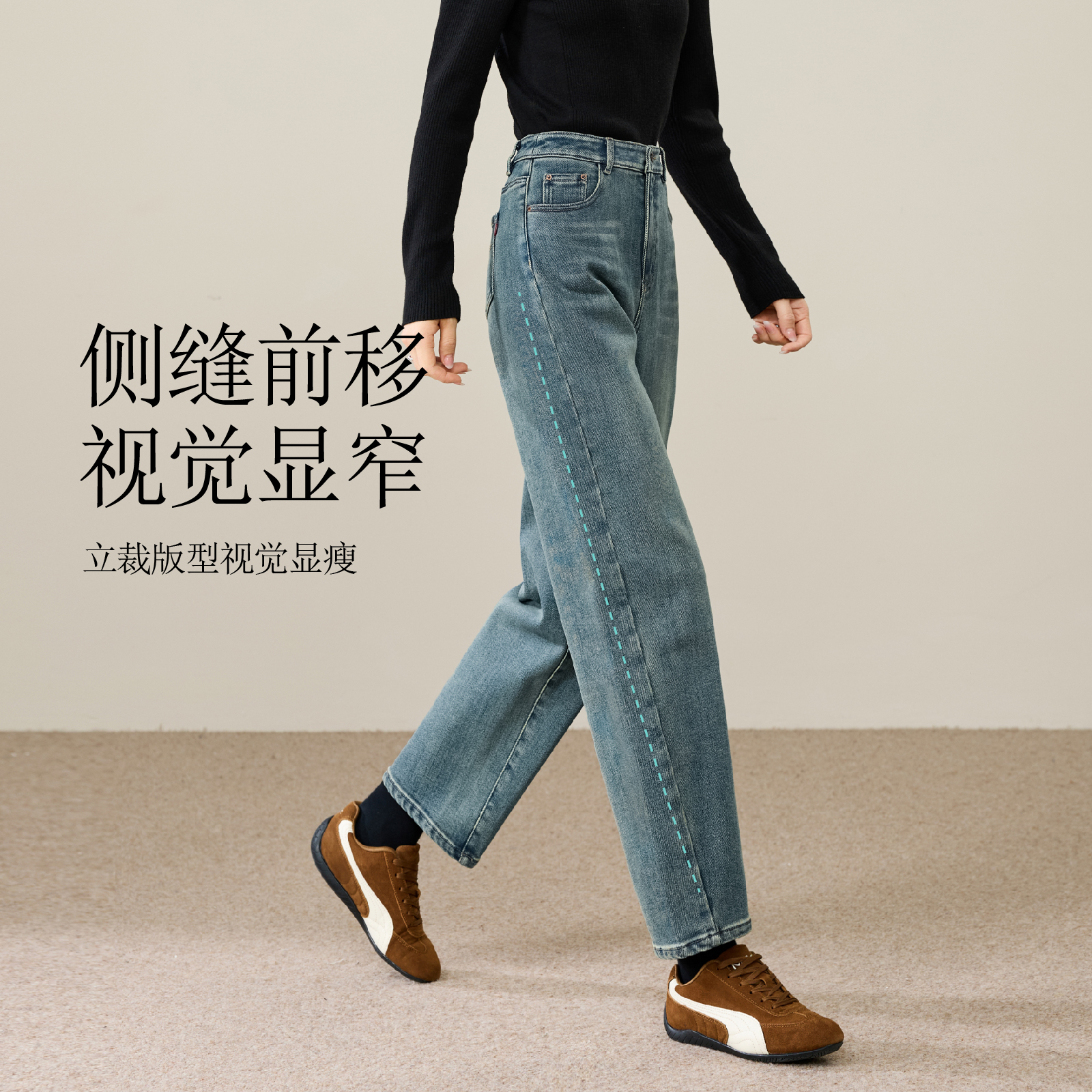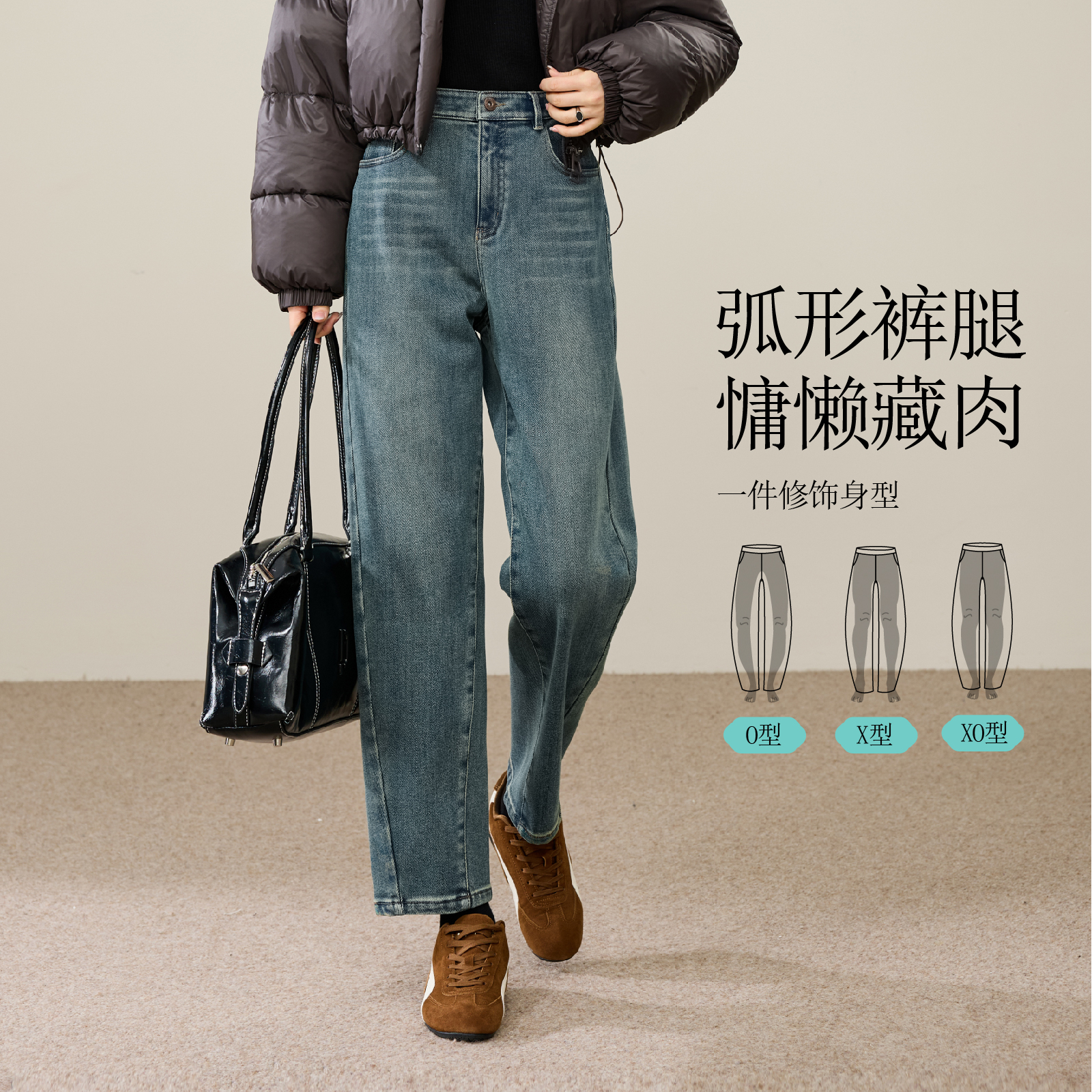 逸阳加绒茧型裤女2025冬季新款香蕉显瘦弯刀小个子宽松百搭牛仔裤