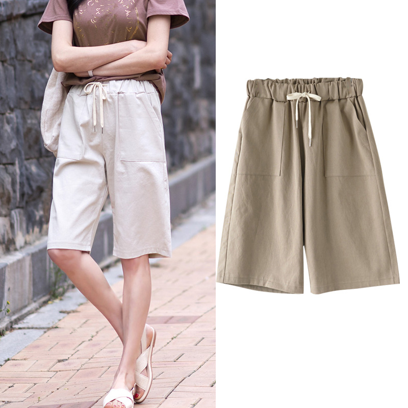 新短裤女夏季薄款高腰阔腿300斤休闲中裤直筒大码松紧腰五分裤女