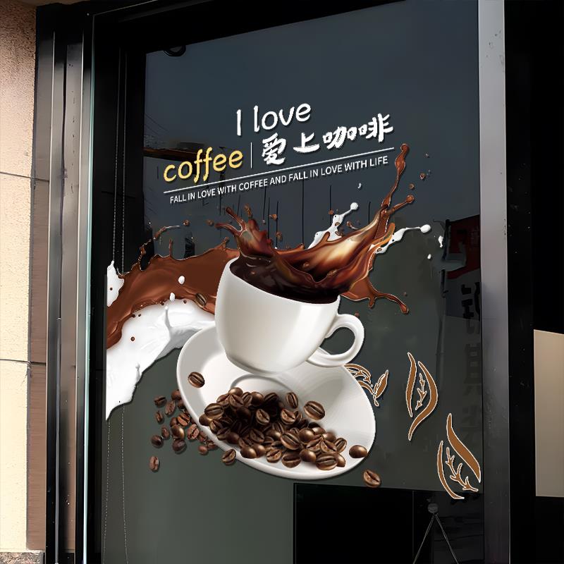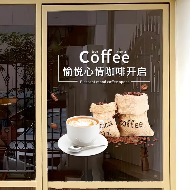 咖啡店休闲餐厅西餐厅玻璃门贴奶茶冷饮店铺橱窗装饰宣传广告贴画