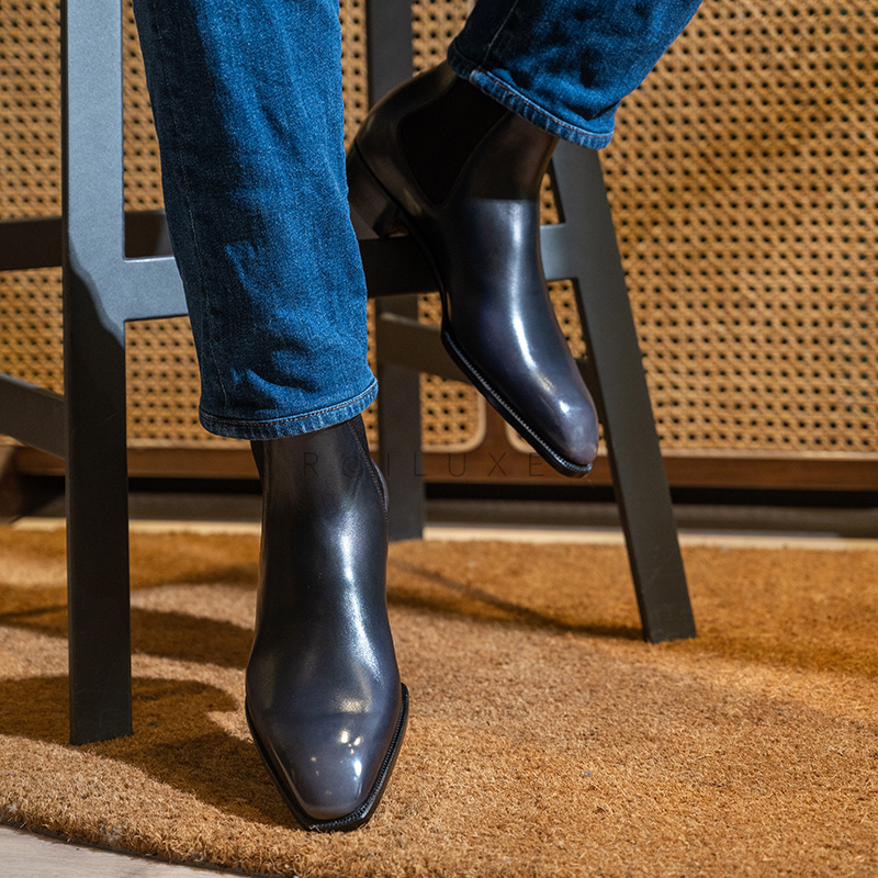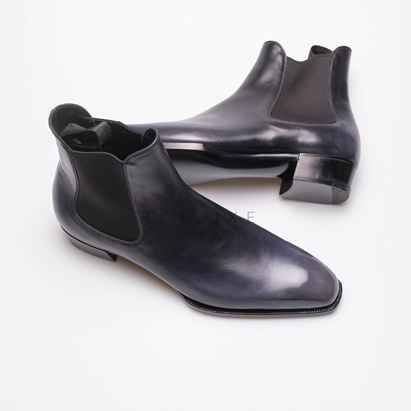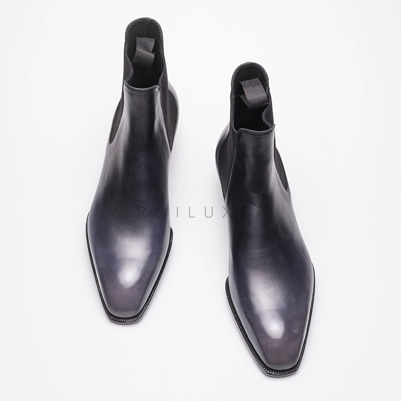 Oct Tenth手工固特异切尔西靴 手缝沿条结构 黑灰擦色Chelsea皮靴