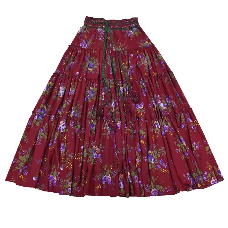【库存清仓】素心自制小碎花长裙春夏季系带全棉超大摆跳舞半身裙