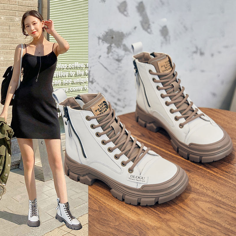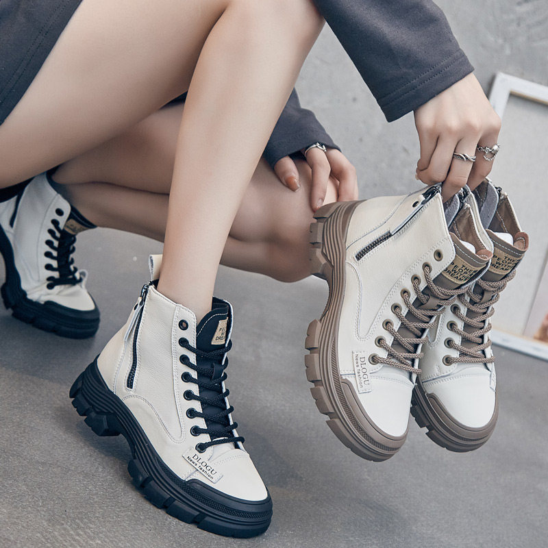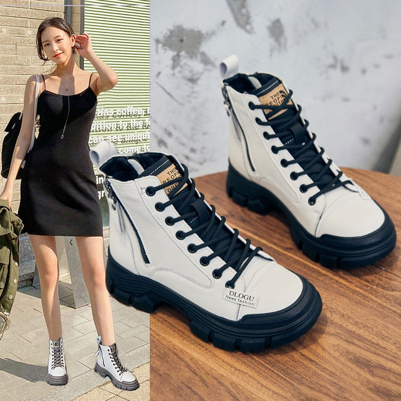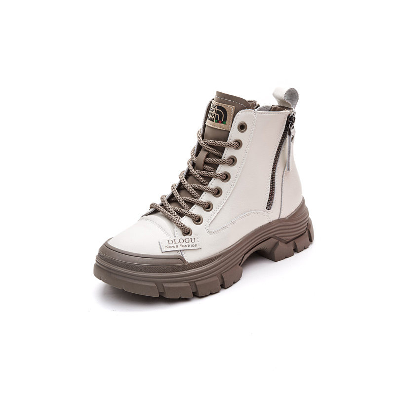 战狼马丁靴女2025年春季新款女鞋真皮加绒短靴子雪地靴高帮小白鞋