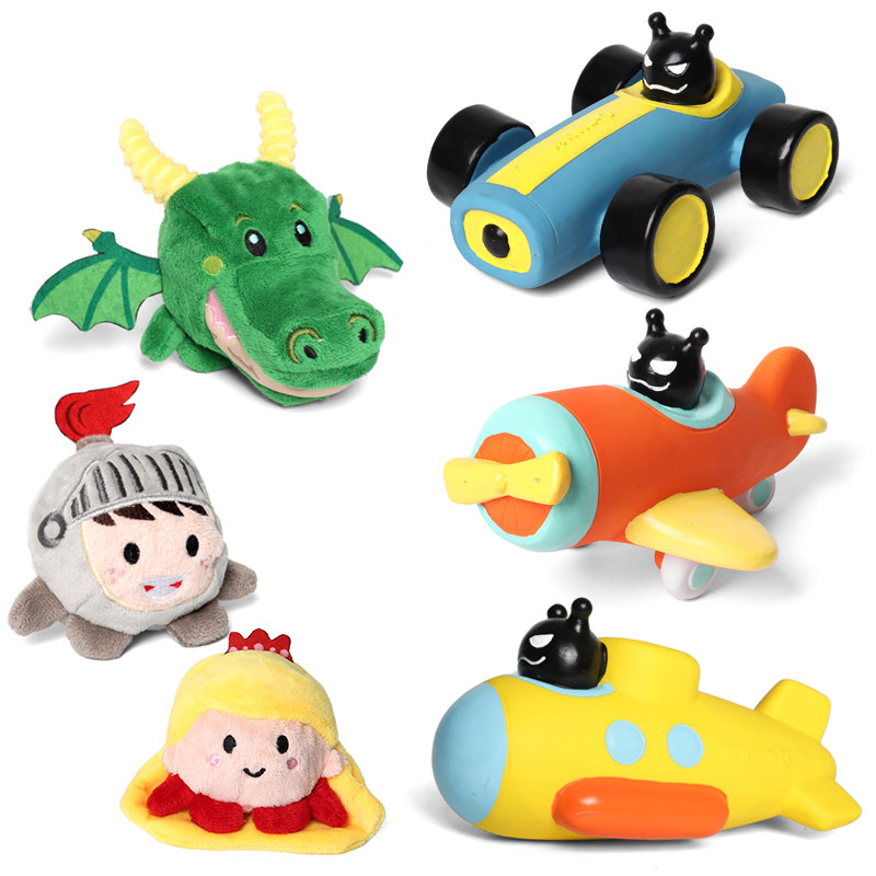 Q-monster毛绒乳胶发声狗狗驾驶童话系列赛车勇士可爱互动犬玩具