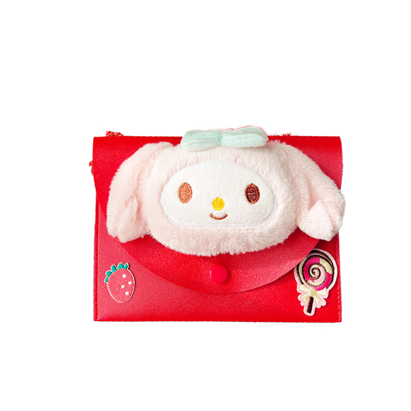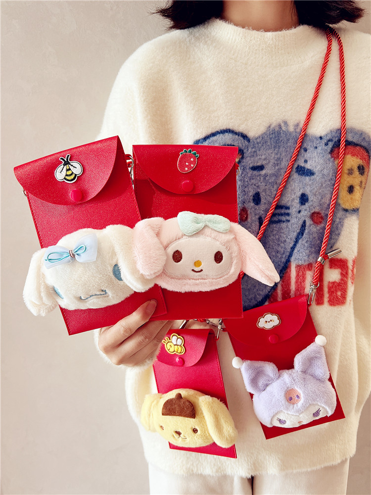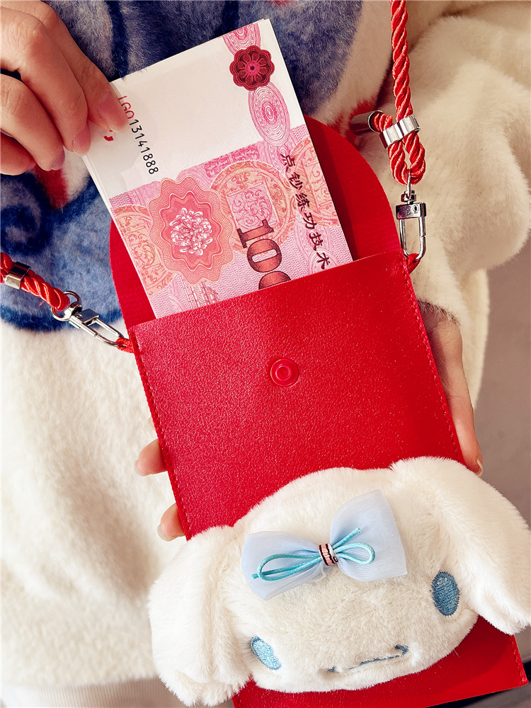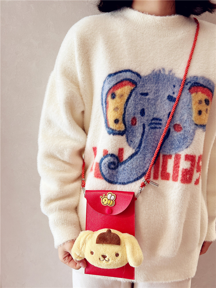 过年拜年万元红包斜跨可背挂绳可爱毛绒粘贴皮质可爱利是封手机包