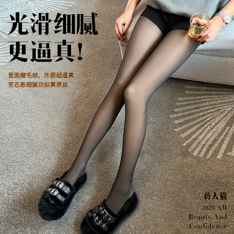 蒋大猫打底裤袜2025新款黑透肤丝袜加绒单层女秋冬厚黑丝光腿神器