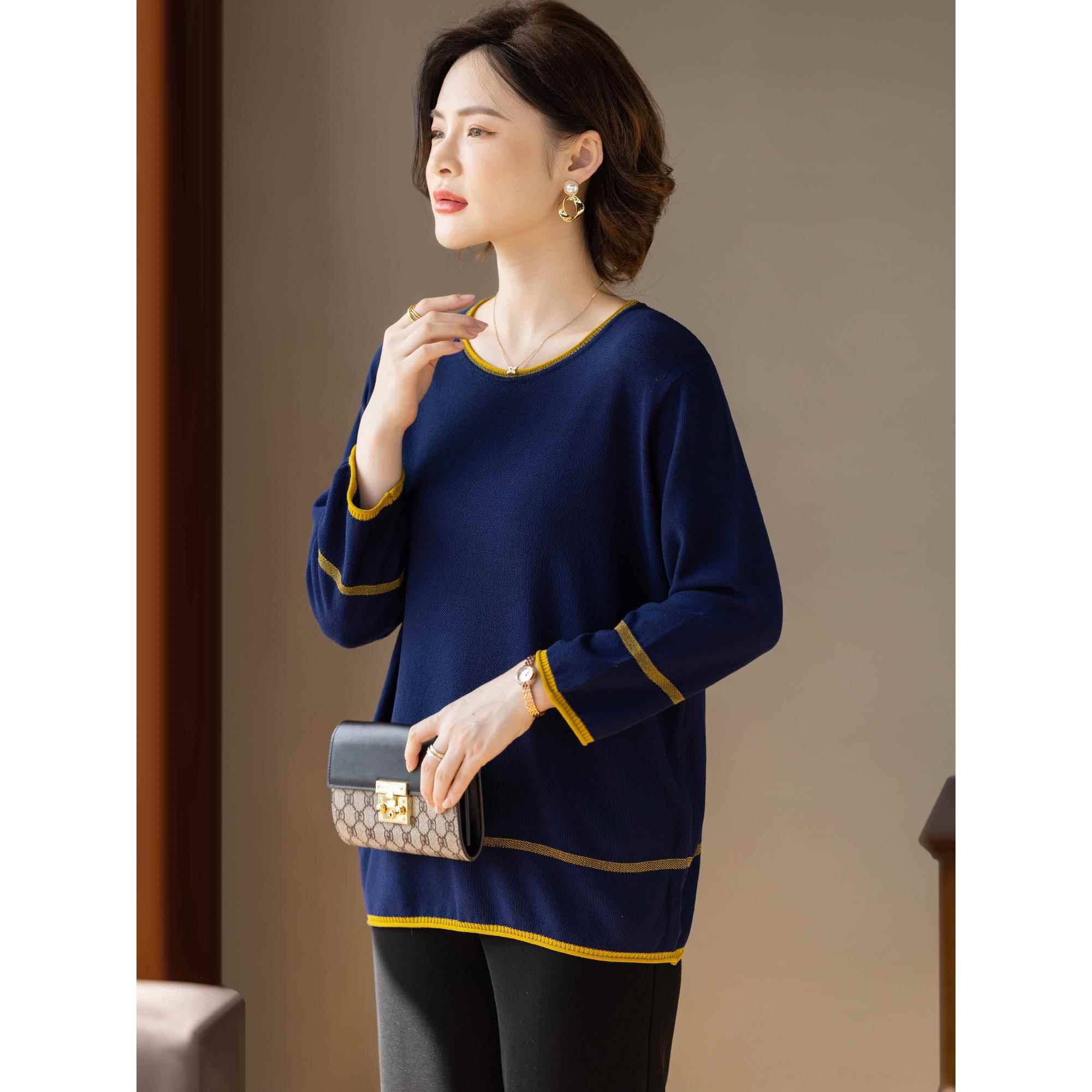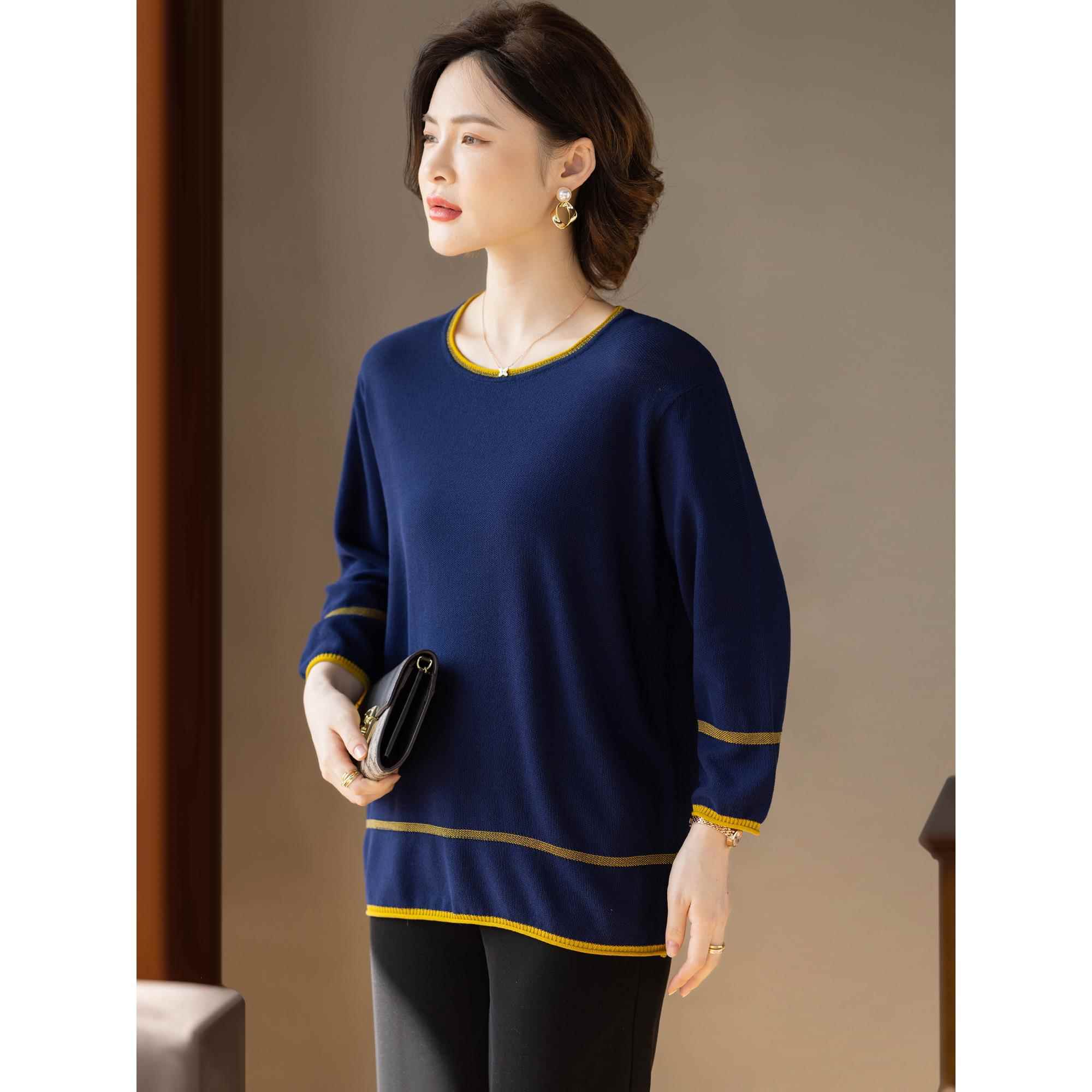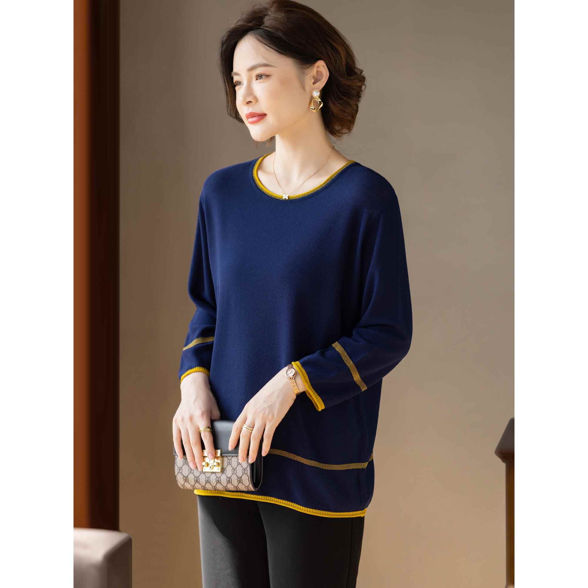 年轻妈妈秋装套装新款中年女士春秋上衣服洋气中老年女t恤针织衫