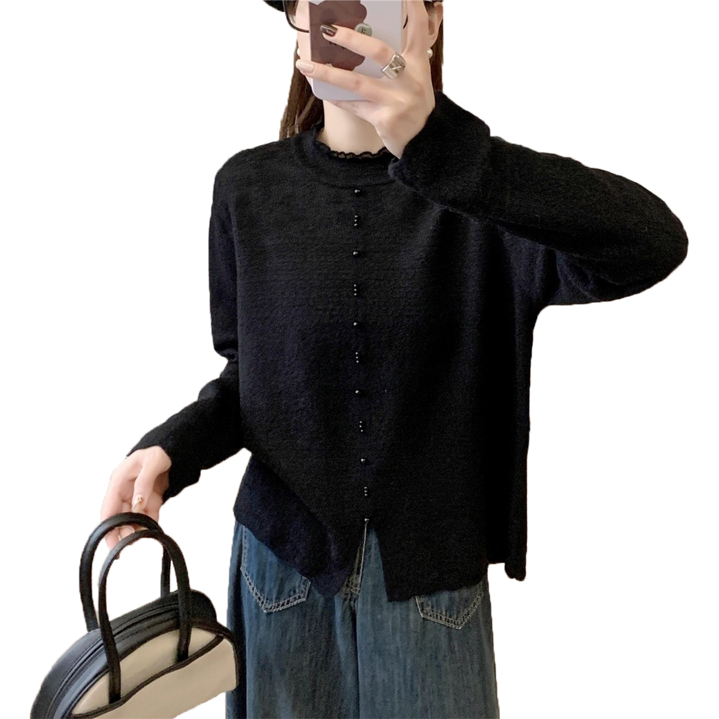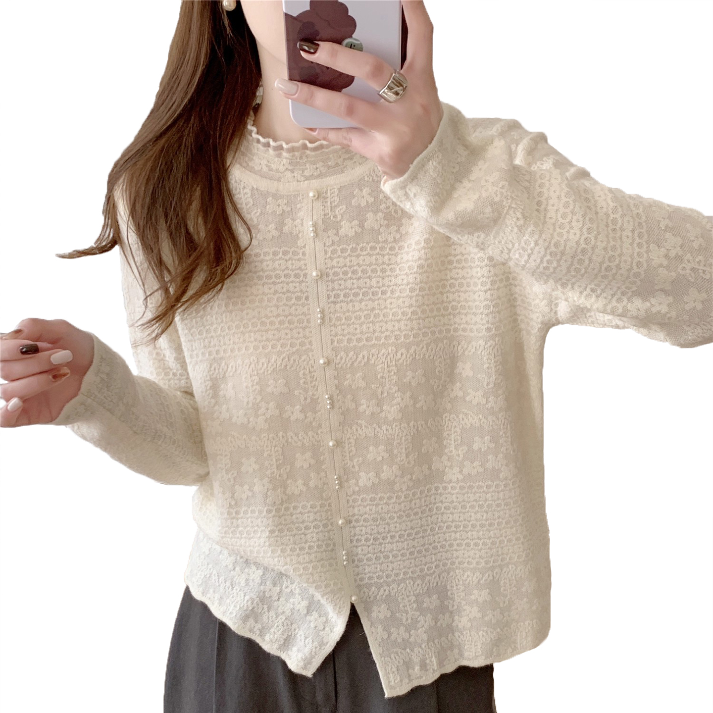 秋冬新款半高领毛衣女春秋内搭可外穿气质百搭针织蕾丝打底衫长袖