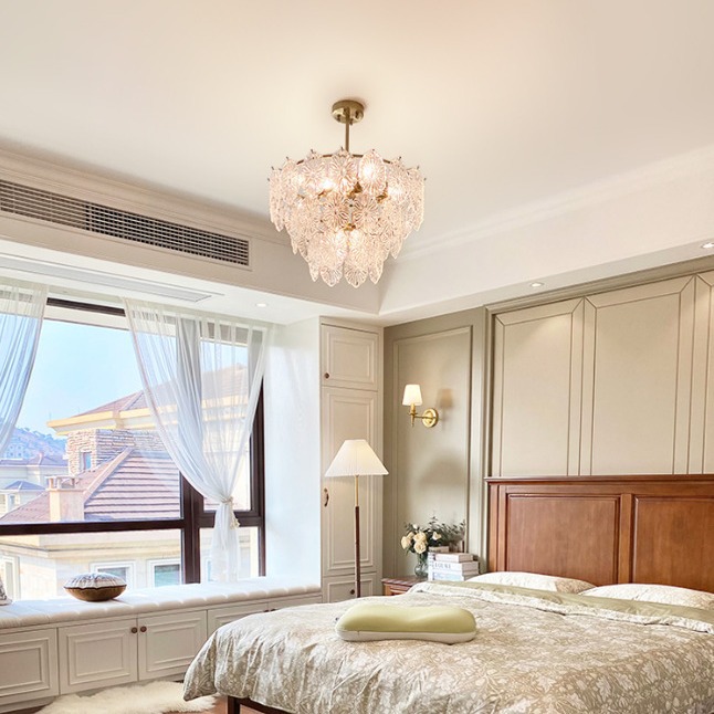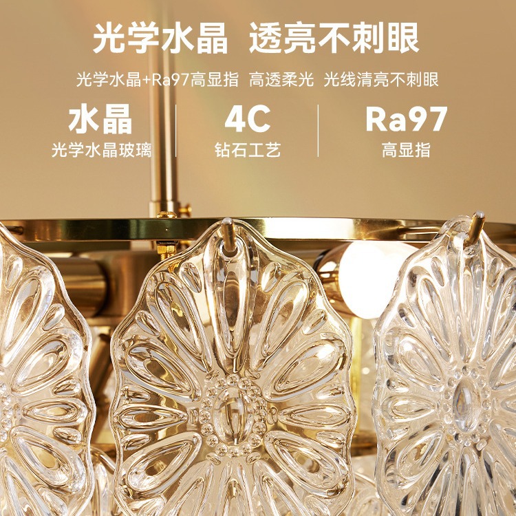 美式复古冰镜水晶灯卧室客厅吊灯法式轻奢现代简约奶油风房间灯具