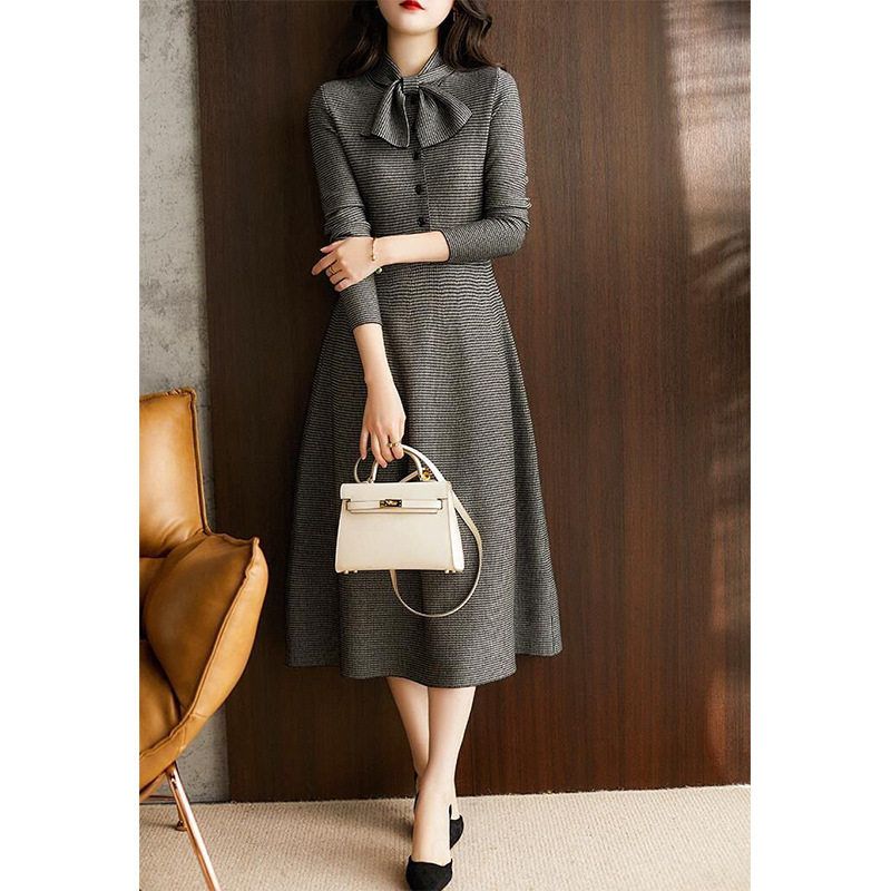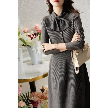 设计感围巾领气质显瘦连衣裙女秋冬新款2025法式别致羊毛呢中长裙