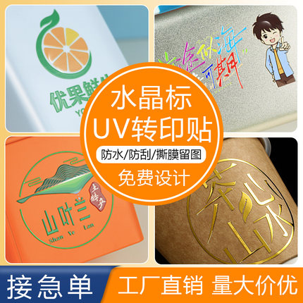 定制水晶标贴uv转印贴金属贴烫金贴纸LOGO商标撕膜留字订做不干胶