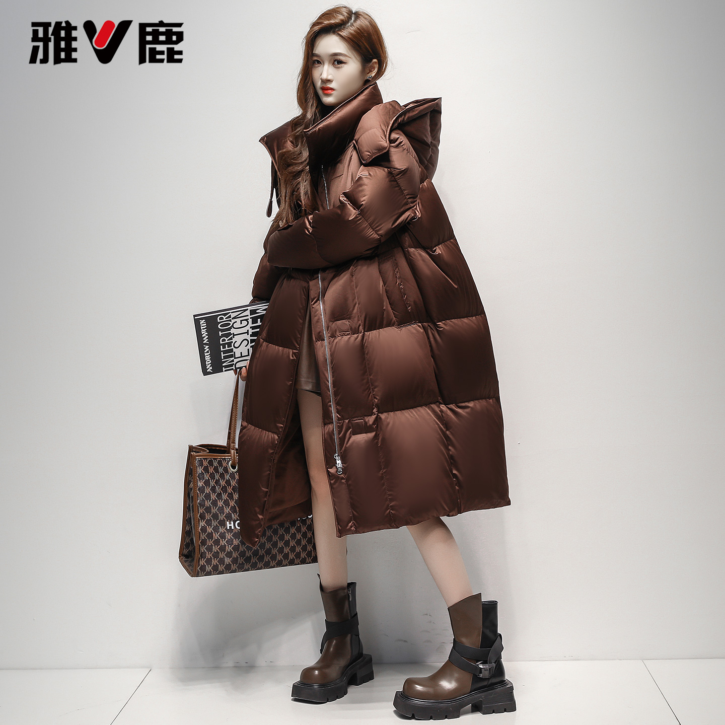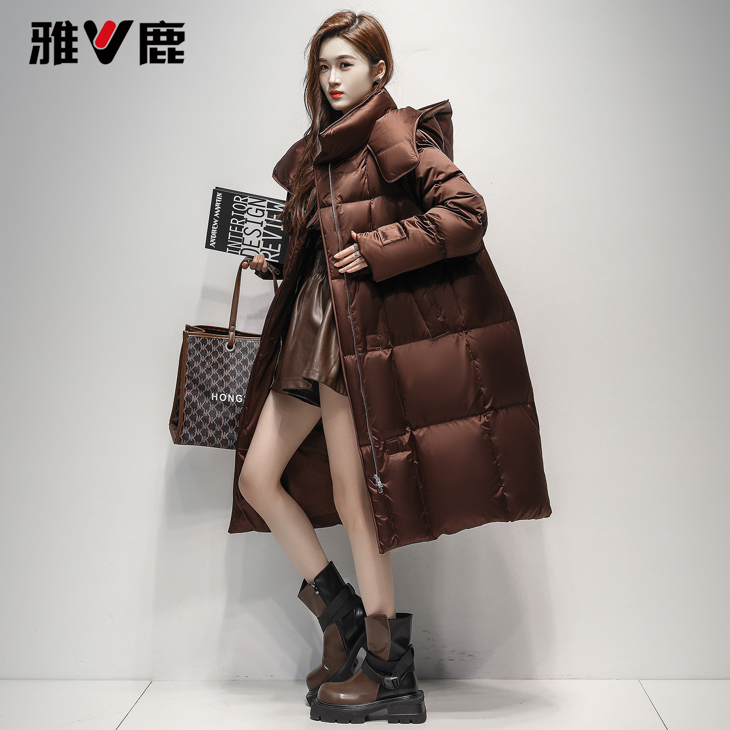 雅鹿高端时尚鹅绒服女2025冬季修身中长款防风抗寒羽绒服保暖外套