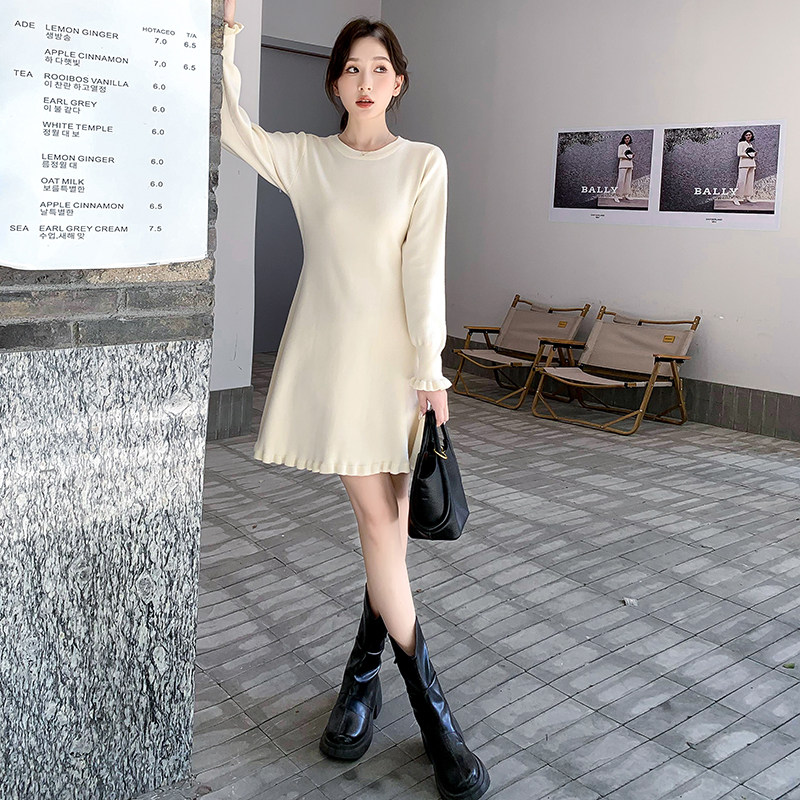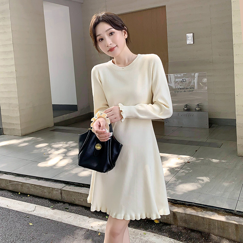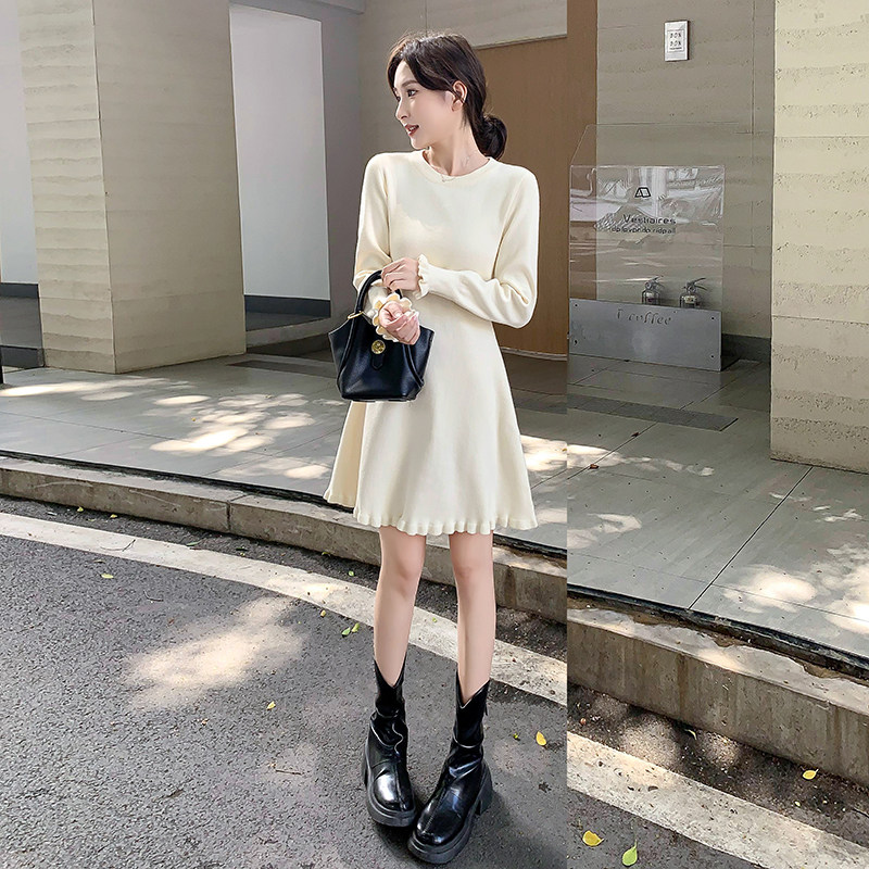 长袖连衣裙 秋冬新款显瘦针织裙中长款内搭打底毛衣裙女a字小黑裙
