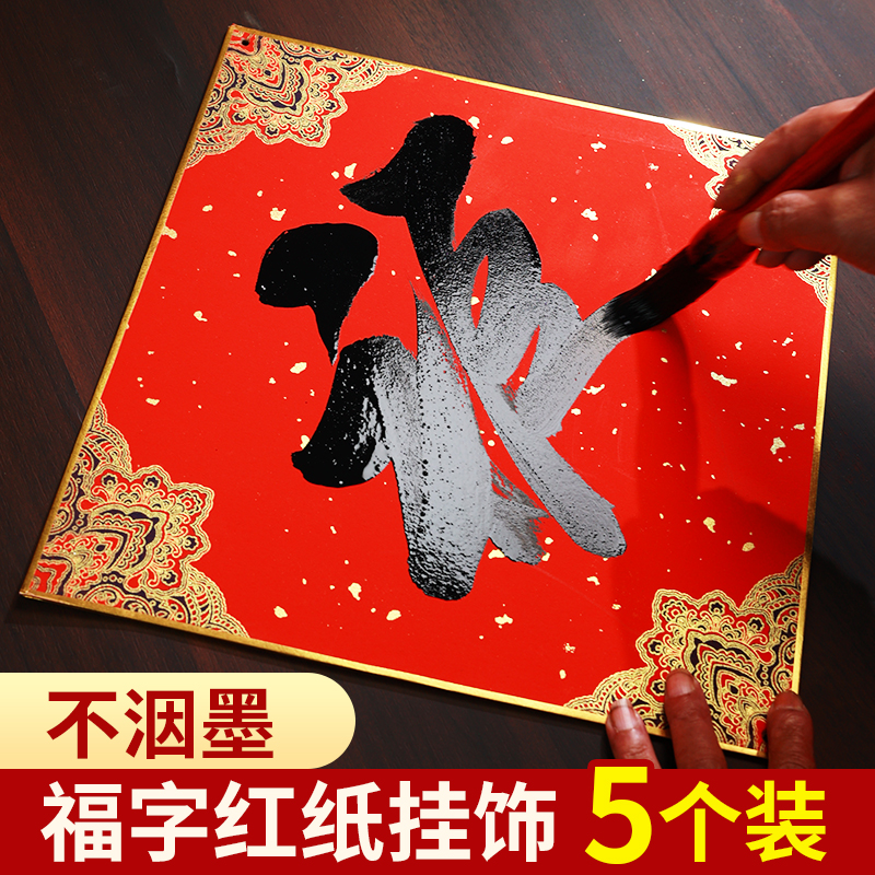 蛇年2026年福字帖门手写福卡挂件书法小卡纸挂画新款挂饰斗方红纸写福字的硬卡空白红色纸宣纸专用春联万年红