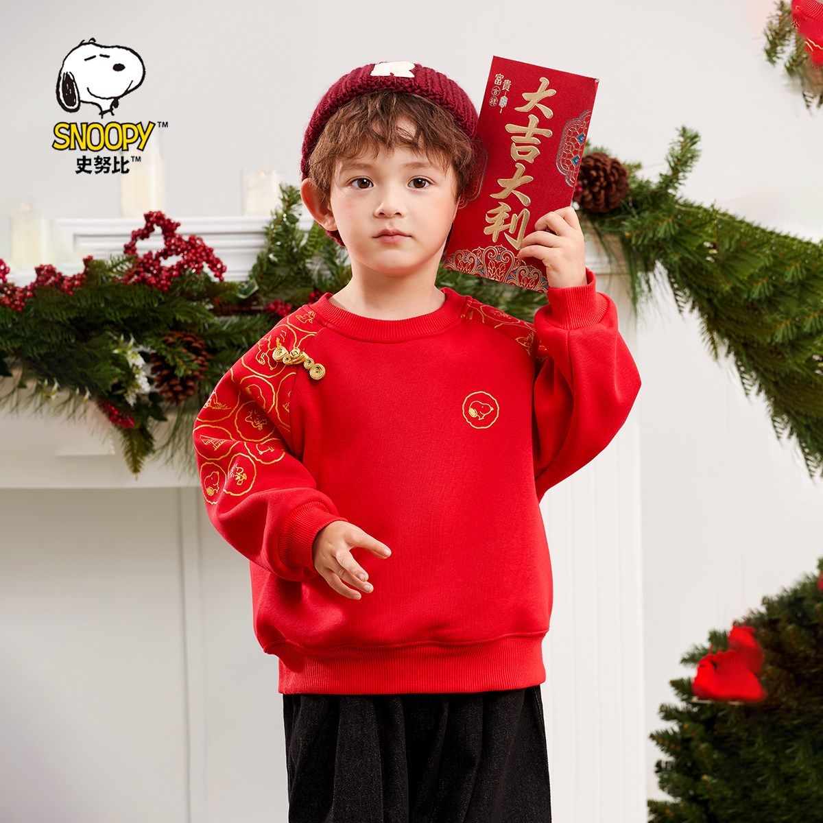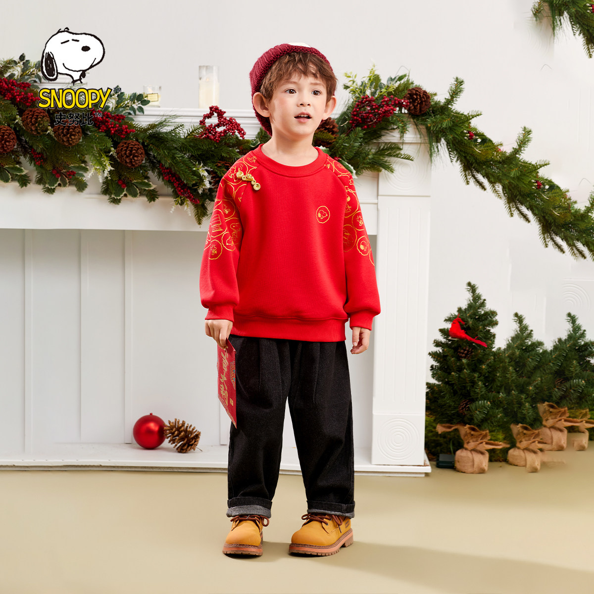 史努比儿童加绒卫衣红色拜年服