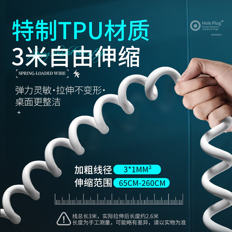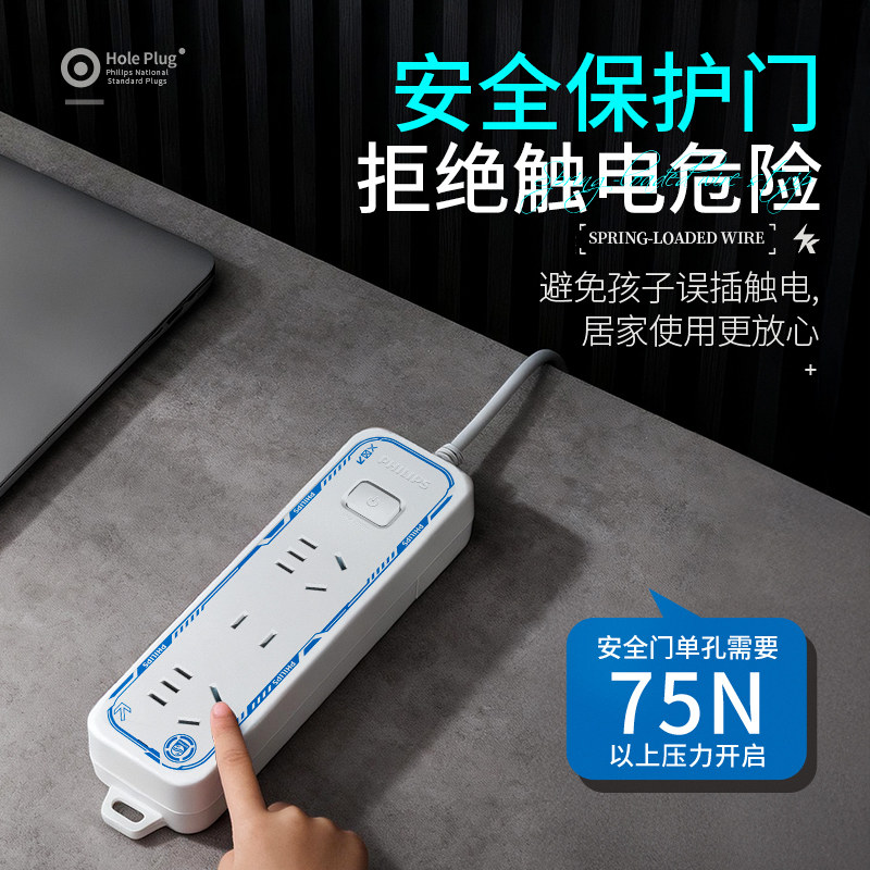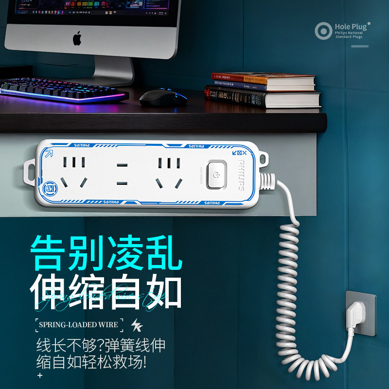飞利浦弹簧线插排桌面插座多功能排插带线家用可伸缩电线多孔插线
