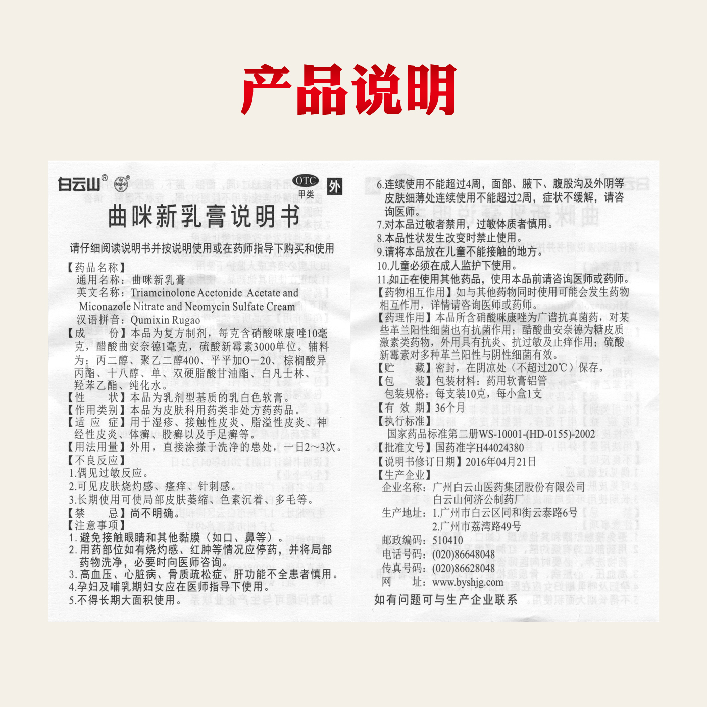 正品】白云山曲咪新乳膏皮肤病湿疹膏皮炎药体癖股癣手足癣软膏药