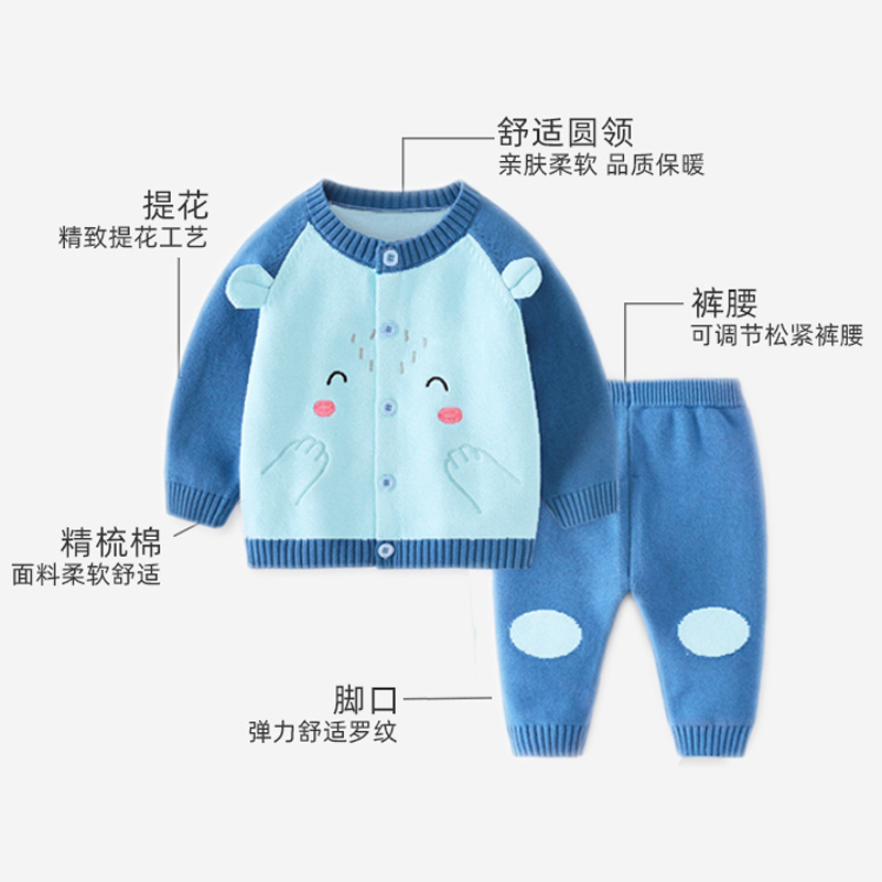 宝宝毛衣开衫套装男女婴儿衣服针织上衣新生儿春秋外套1岁3个月