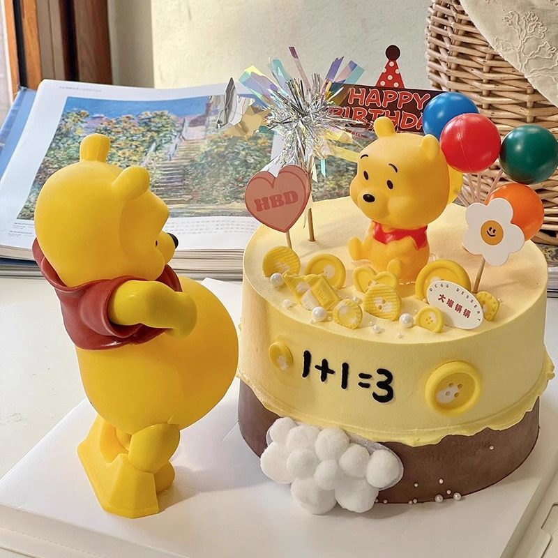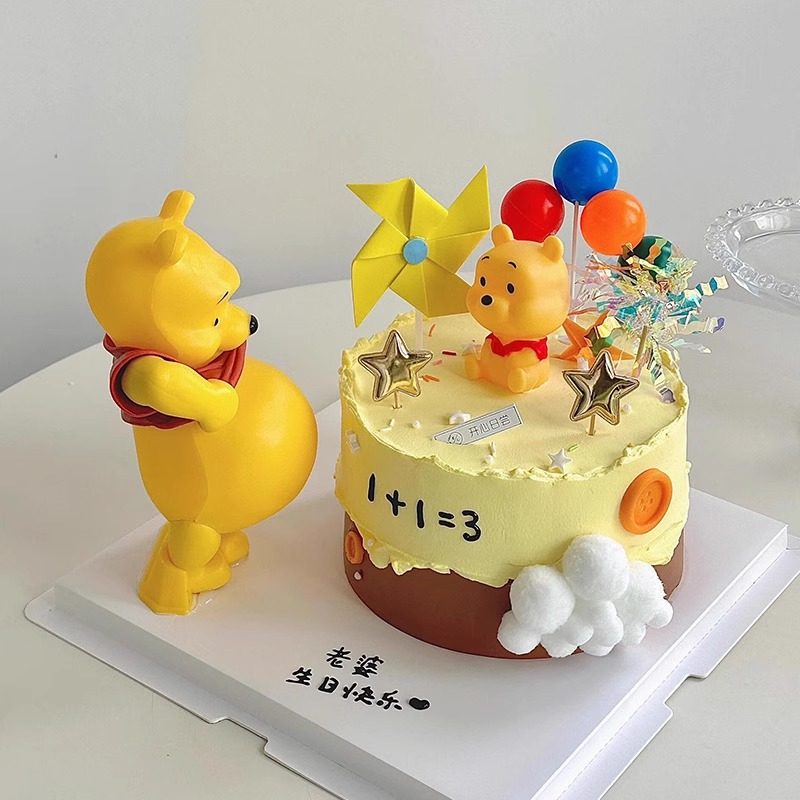 大肚子维尼小熊蛋糕装饰摆件小熊维尼大肚熊孕妇怀孕妈妈插件l