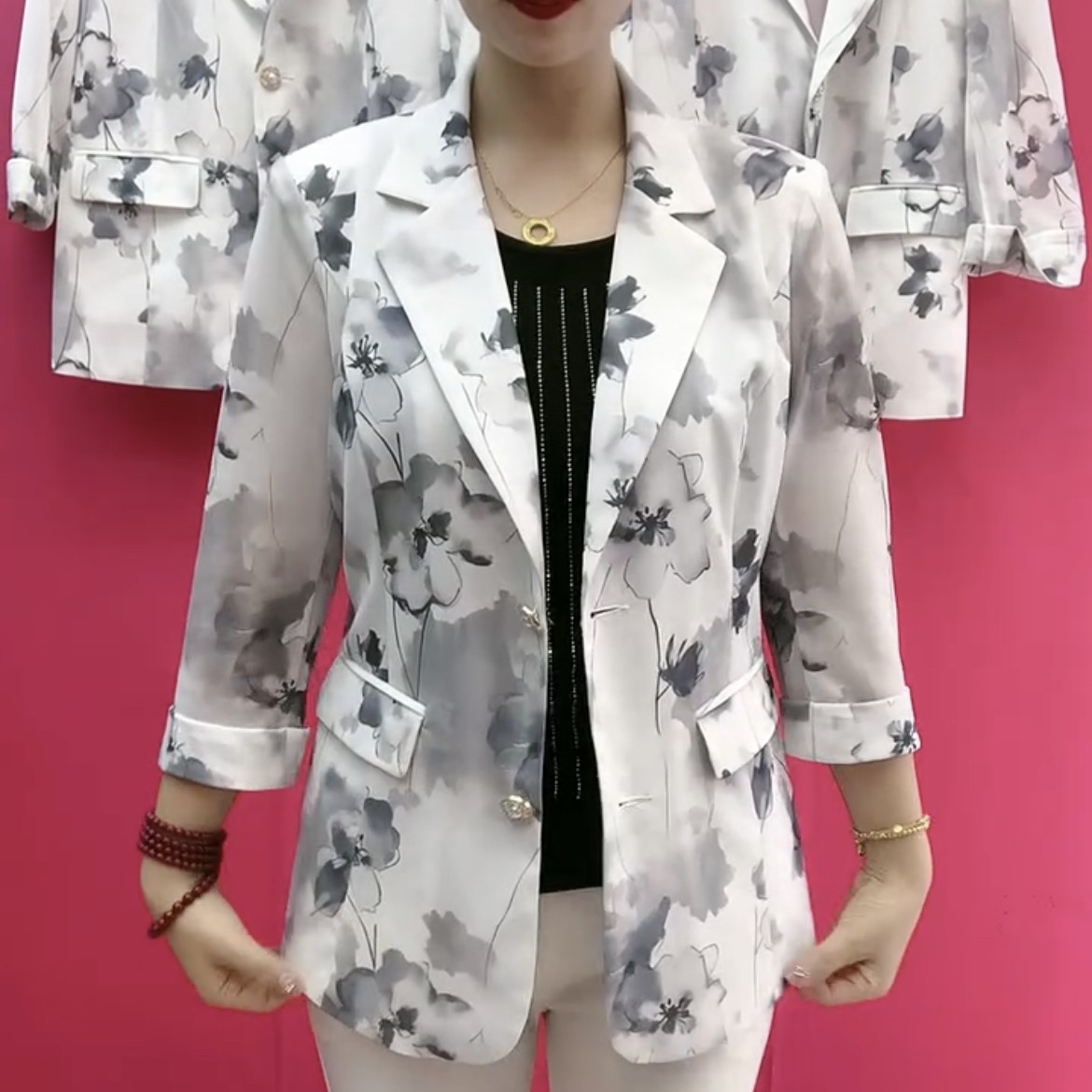 高级感西装外套女春夏2025新款时尚印花小个子休闲气质七分袖薄款