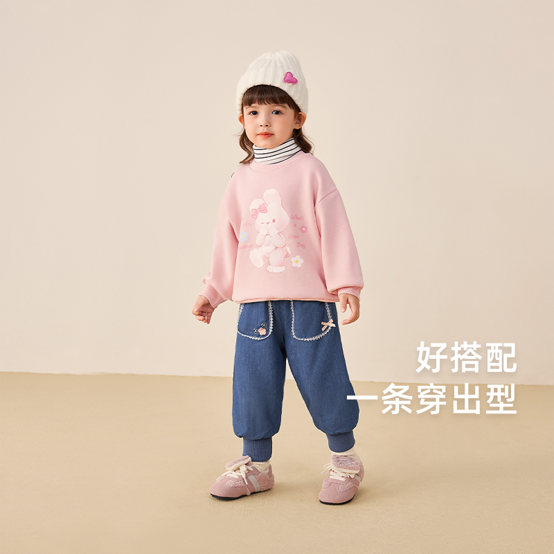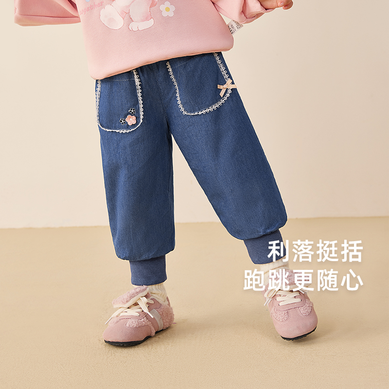 [软牛仔]女童2025春秋牛仔裤儿童休闲束脚裤小童宝宝女孩加绒长裤