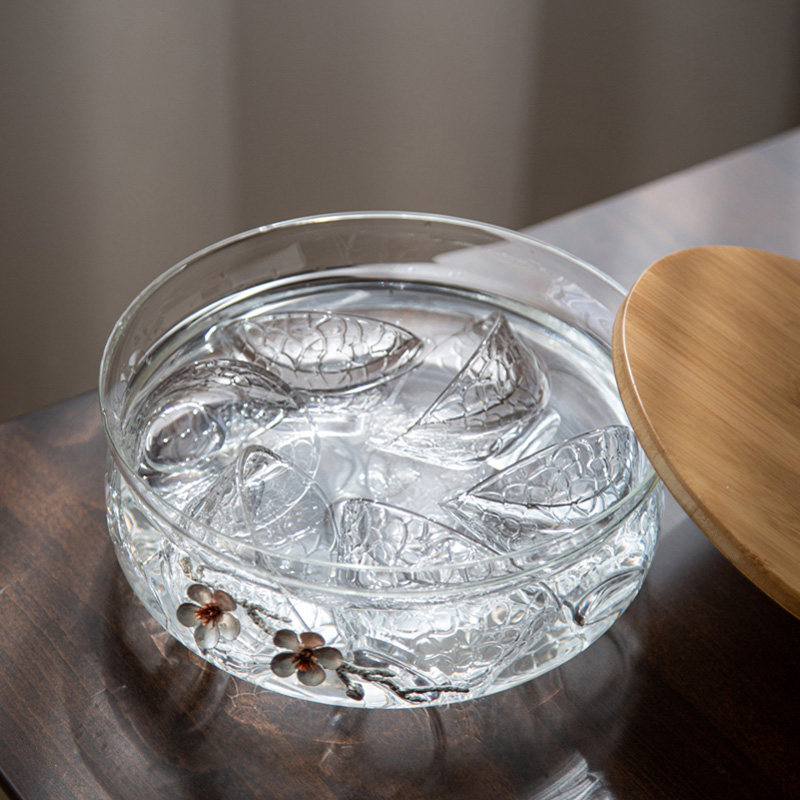 远舍玻璃茶洗耐高温带盖洗茶碗大号水洗茶具配件洗杯盆加热消毒锅
