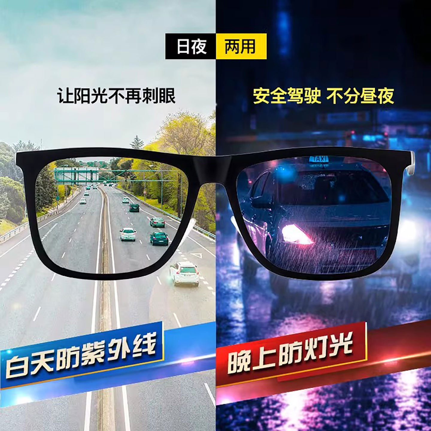 方形日夜两用偏光墨镜男士开车驾驶防紫外线2025新款变色太阳镜潮