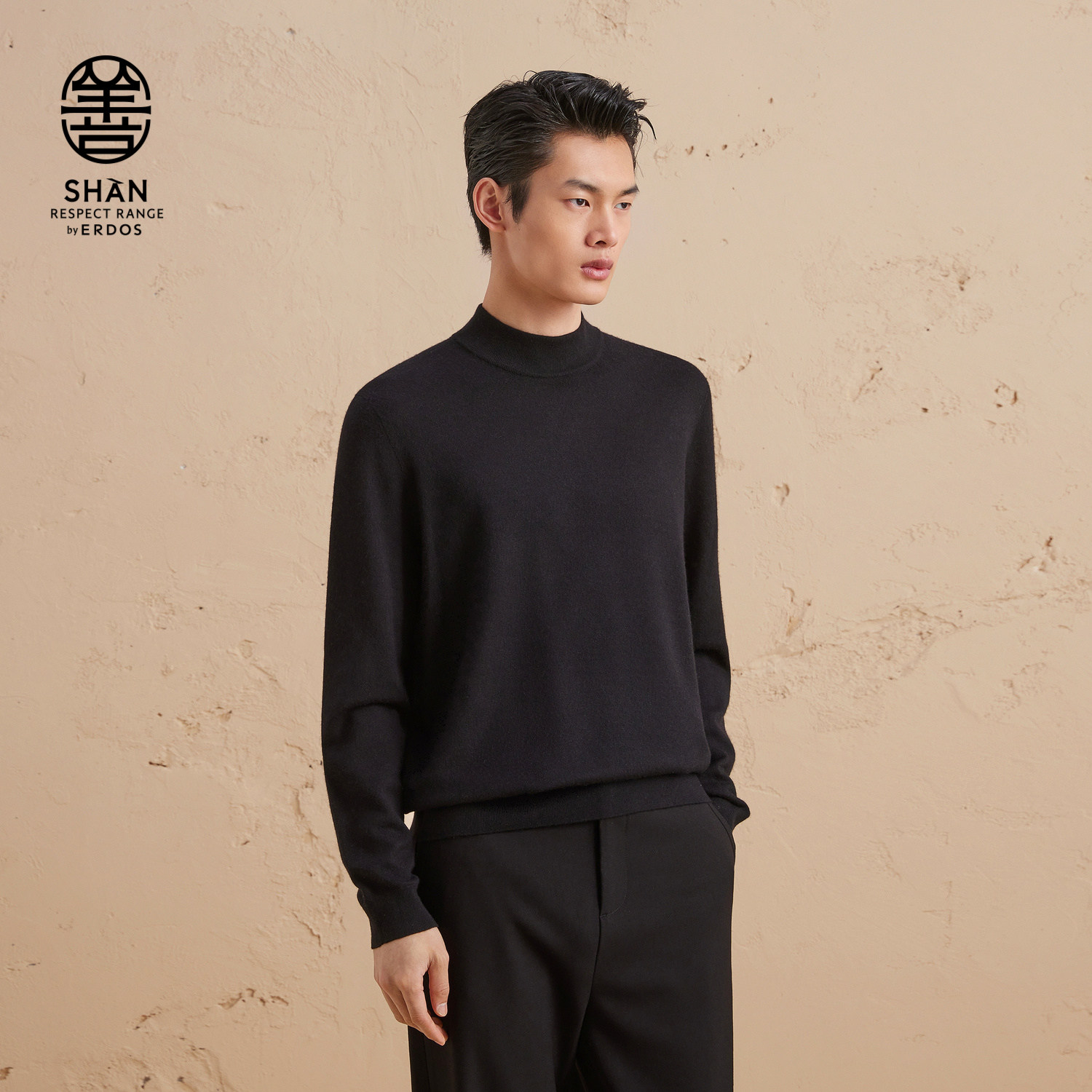 【精纺】ERDOS 半高领羊绒衫秋冬虚提装饰纯色男士针织衫