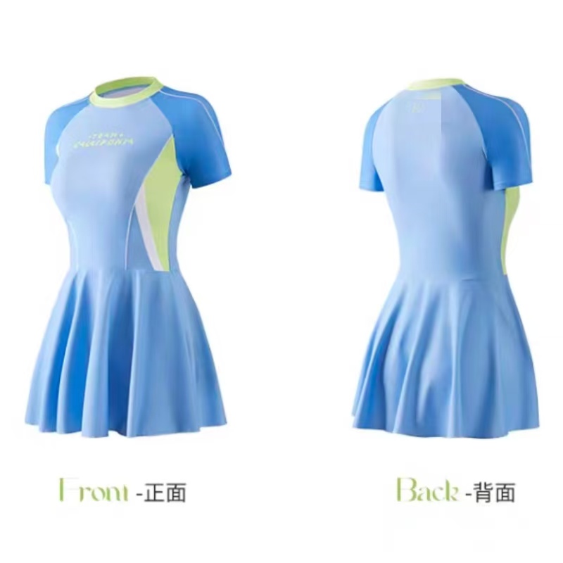 Amber新款裙式连体泳衣女士爆款微胖保守独立平角泳裤运动带胸垫