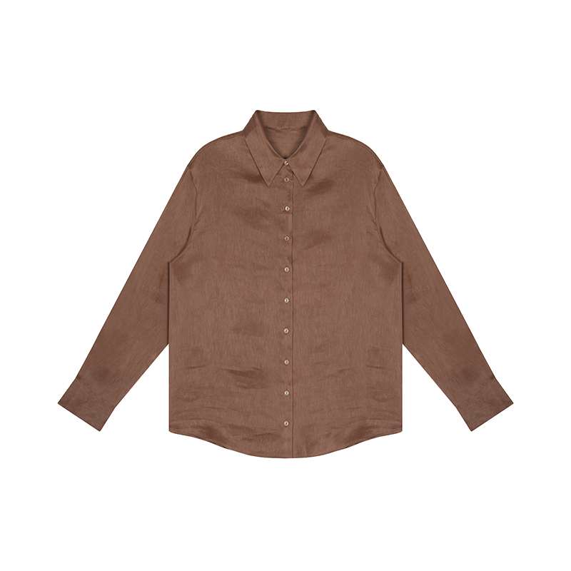 CHU楚妞[入微]亚麻单排扣衬衫春季新款女宽松老钱风通勤衬衣