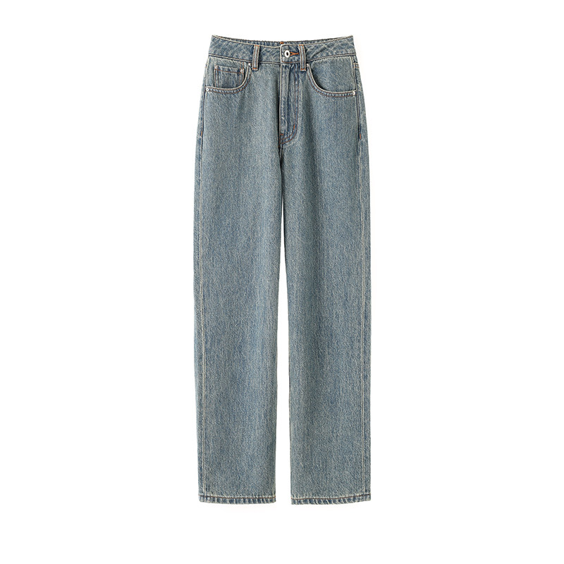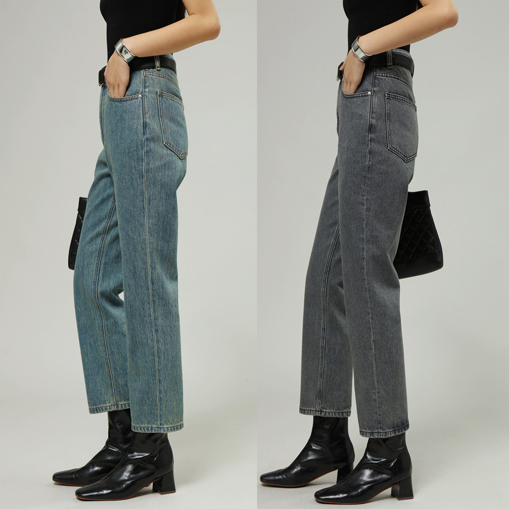 FANLE STUDIOS 定制水洗做旧高腰小宽松直筒9分牛仔裤烟管裤