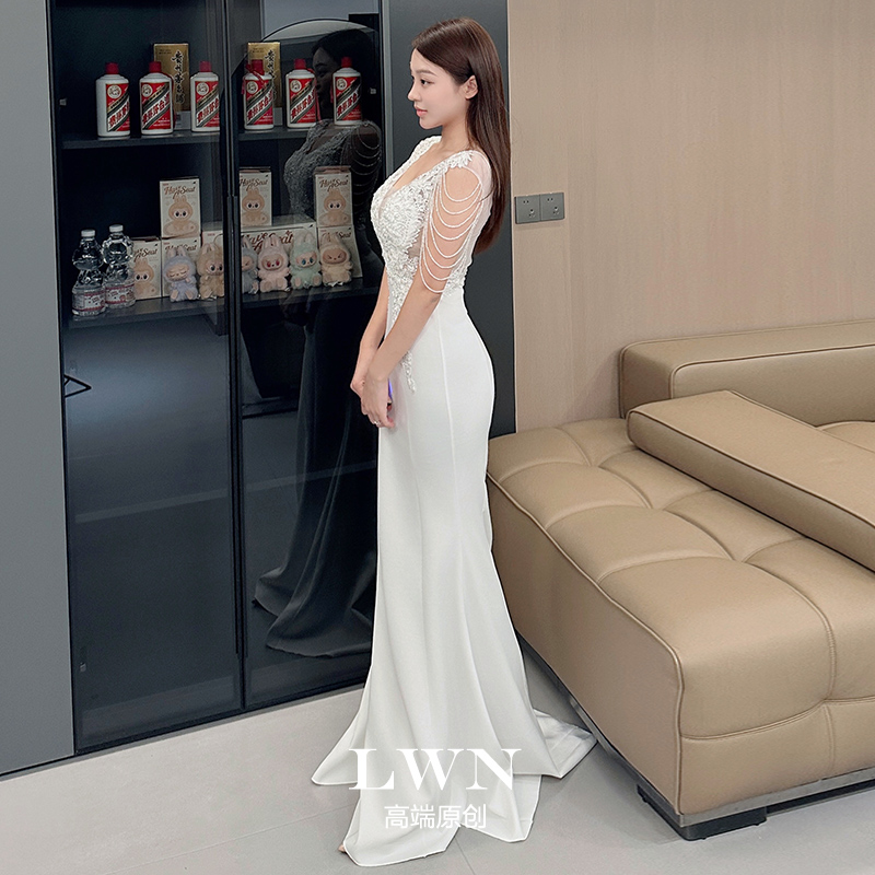 高级敬酒服新娘轻婚纱烫钻晚礼服2025新款白色奢华大牌订婚礼服女