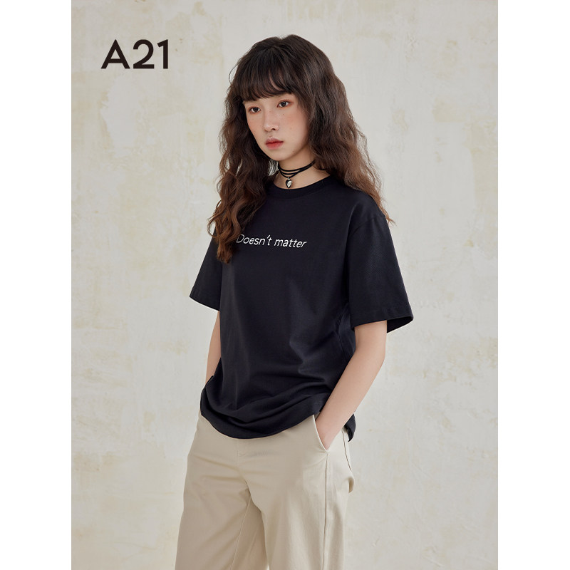A21女装圆领短袖T恤夏季简约ins百搭基础情侣装上衣