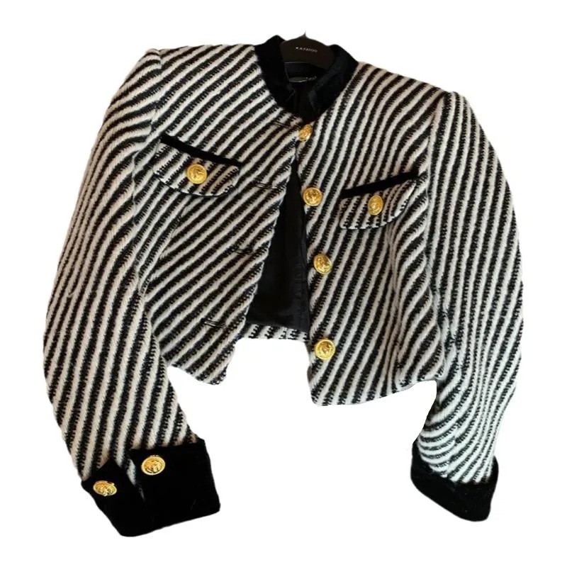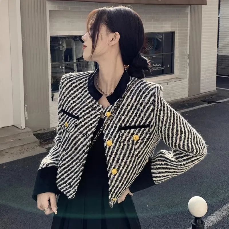 秋冬季财阀千金小香风外套女小个子早春加厚高档短款立领上衣洋气