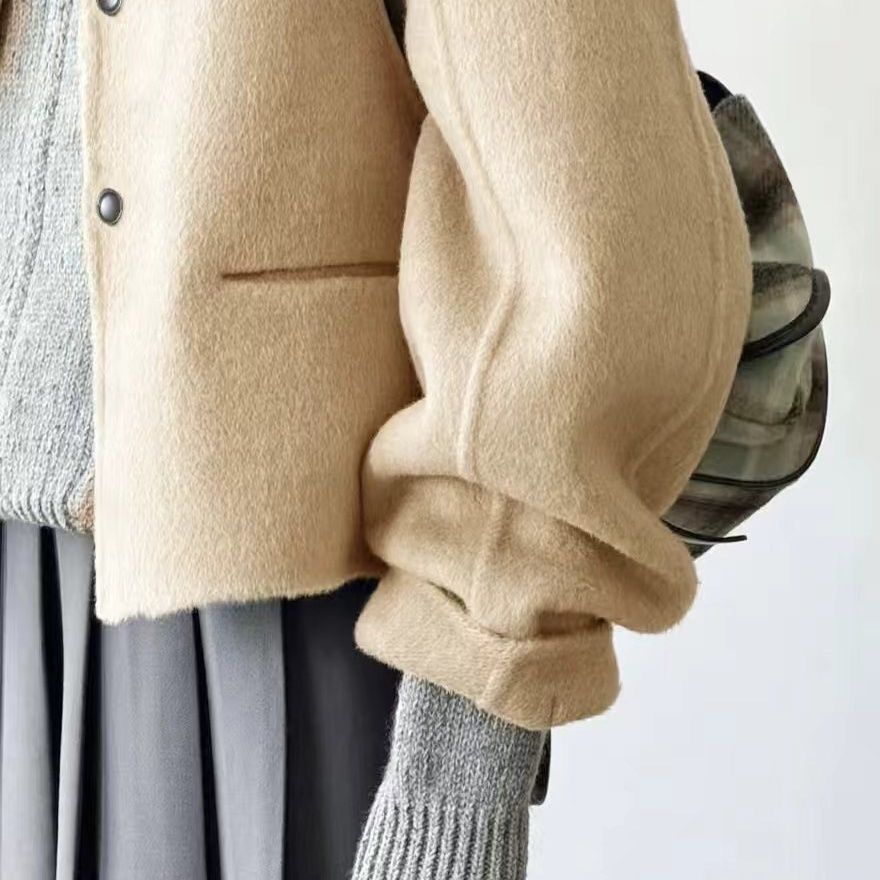 圆领小个子短款双面羊绒大衣女2025新款秋冬奶黄色高级感羊毛外套