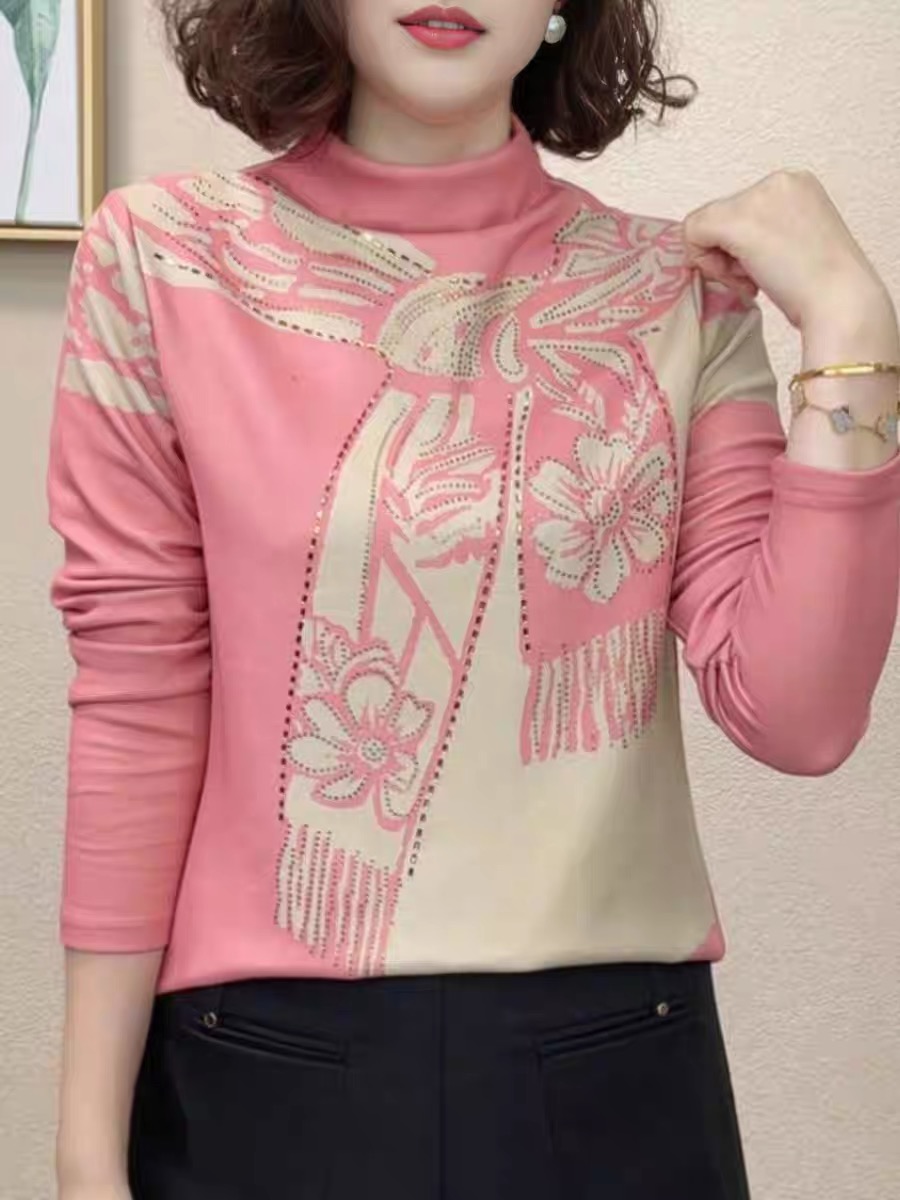 2025年新款妈妈装秋冬加绒保暖打底衫中老年女装洋气减龄长袖上衣
