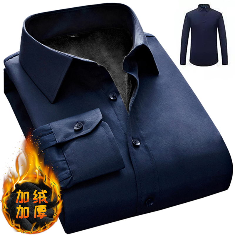 白色工装保暖衬衫男长袖秋冬季加绒加厚商务休闲衬衣男士修身外套