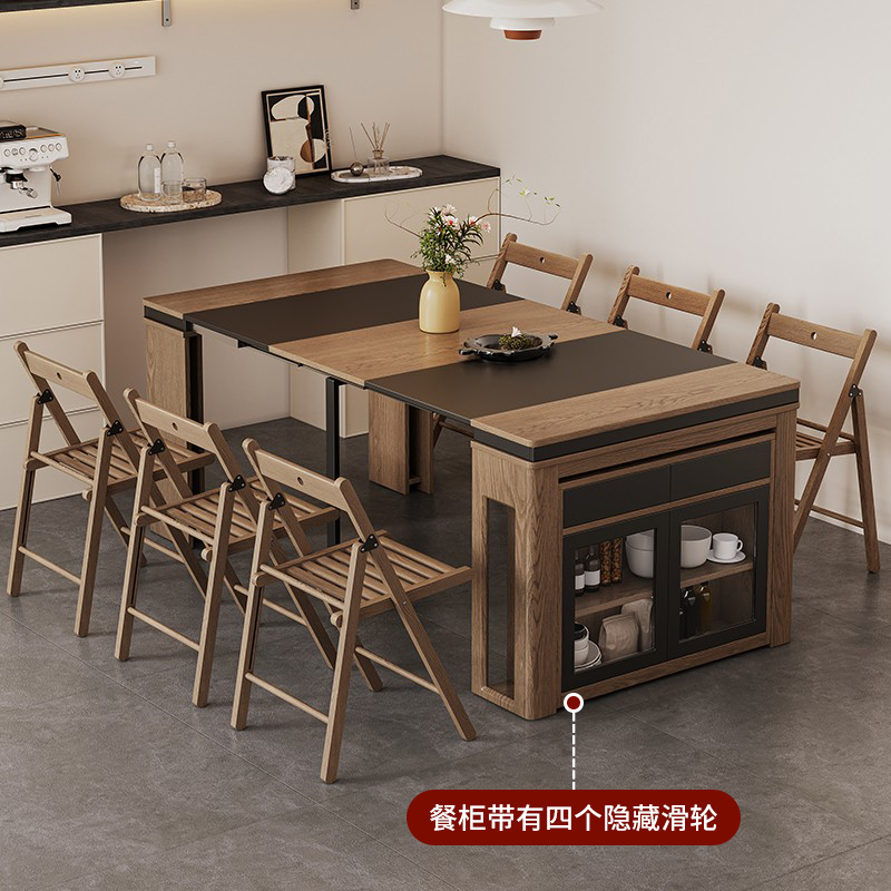 北欧折叠伸缩餐桌餐边柜一体多功能家用小户型隐形家具靠墙
