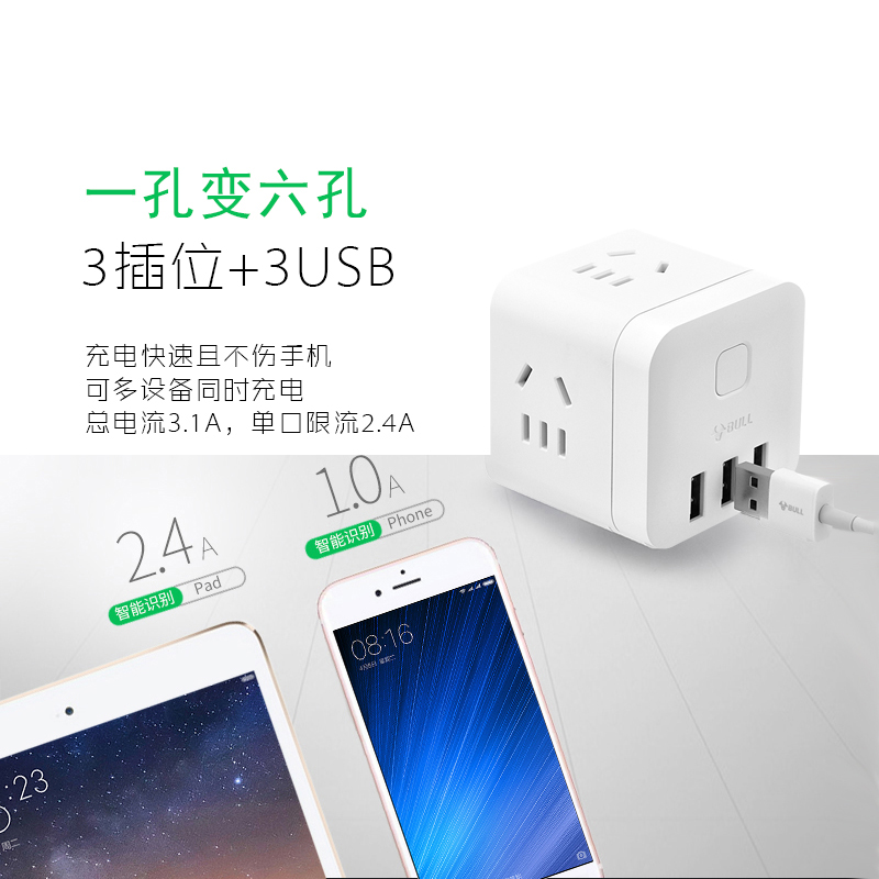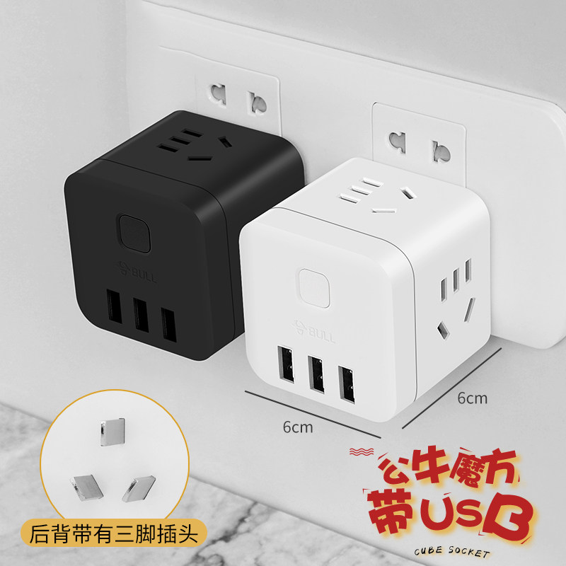 公牛插座不带线魔方转换器黑白小