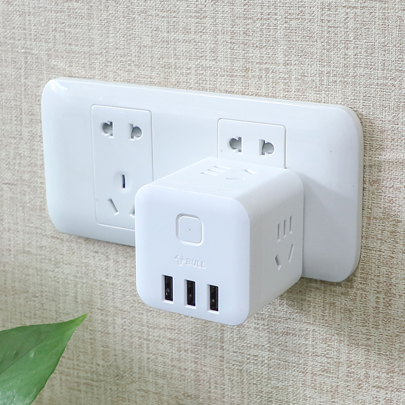公牛插座不带线魔方转换器黑白小型插线板插排无线一转多功能插头