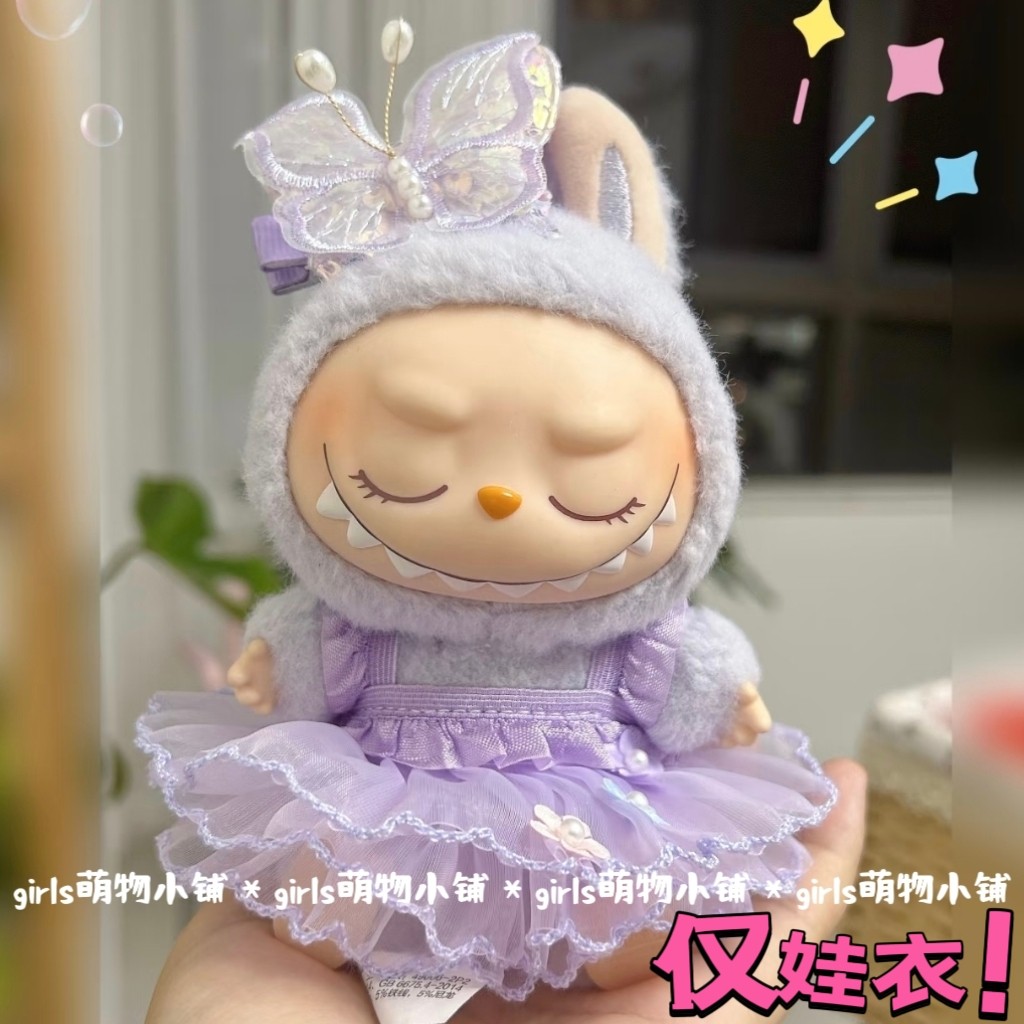 Labubu坐坐派对娃衣一代二代拉布布搪胶挂件衣服裙子圣诞新年套装