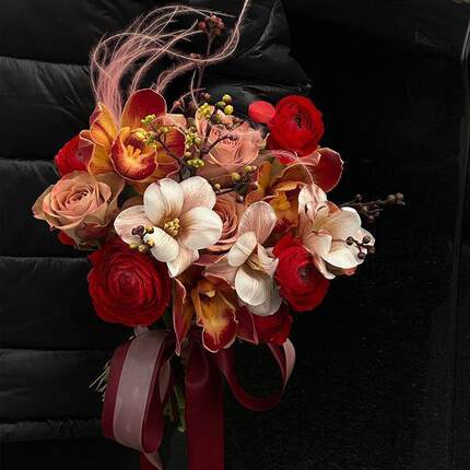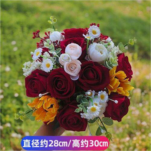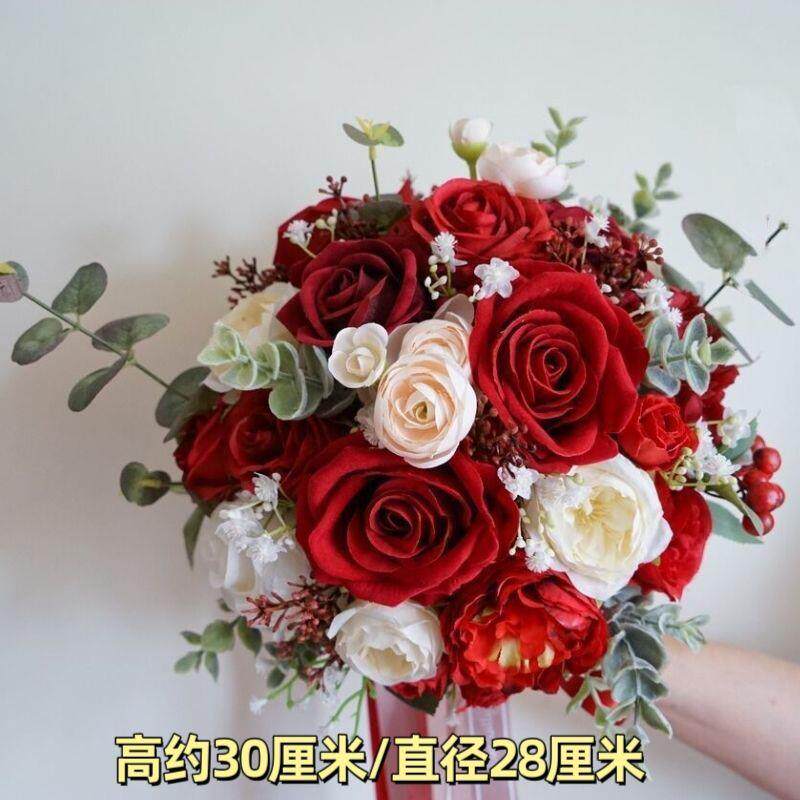手捧花新娘结婚红色玫瑰新款森系婚礼真花拍照道具领证捧花球
