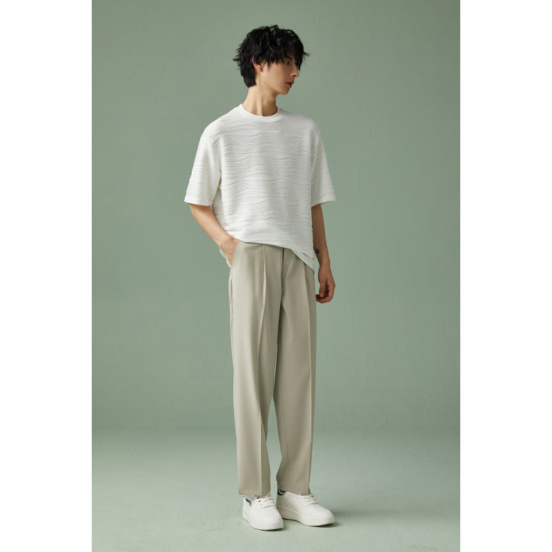天丝绵羊毛休闲西裤男士垂坠感设计夏季新款薄款直筒宽松长裤子男
