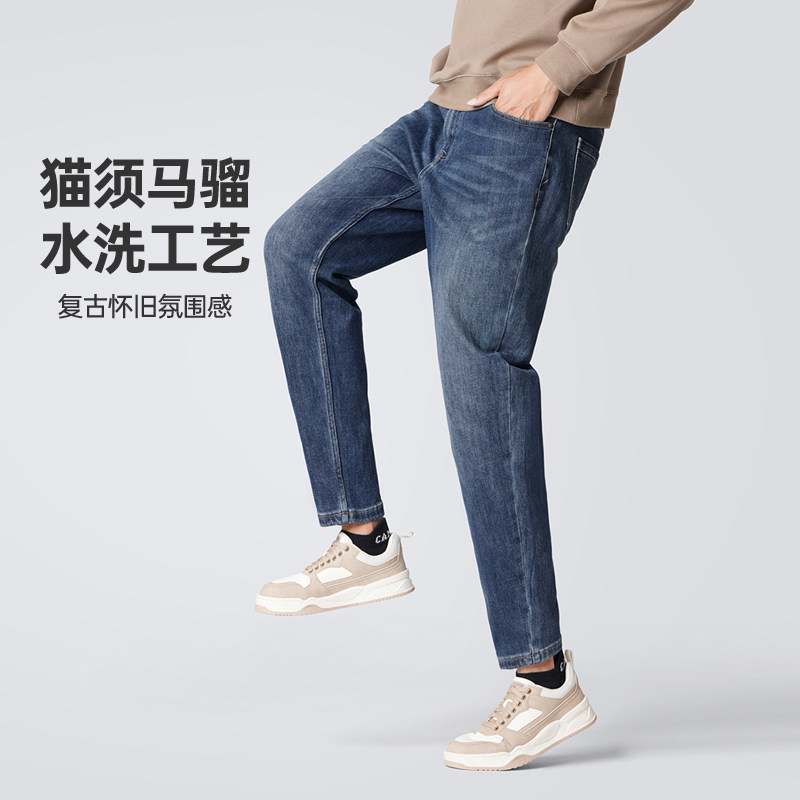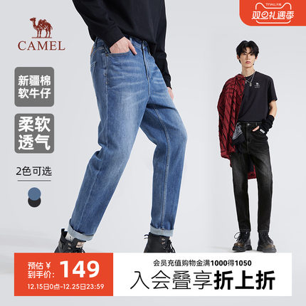 骆驼男装锥形牛仔裤男款春秋季弹力新疆棉舒适休闲洗水长裤子